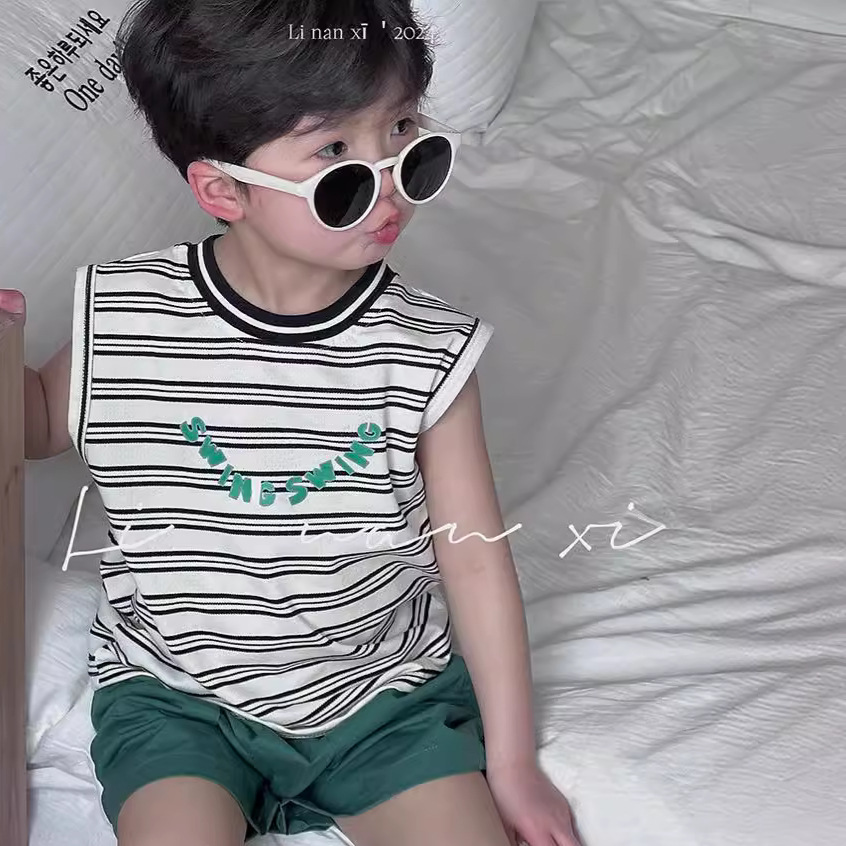 24夏新品儿童背心男女童休闲无袖圆领T恤百搭潮酷针织条纹上衣
