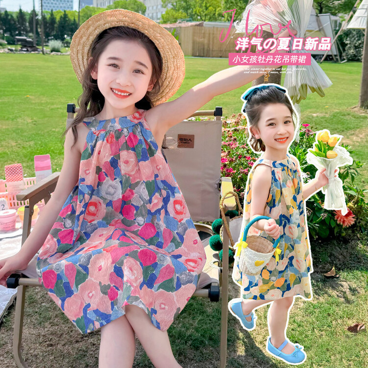 女童吊带连衣裙夏季新款儿童背心裙洋气宝宝碎花公主裙子