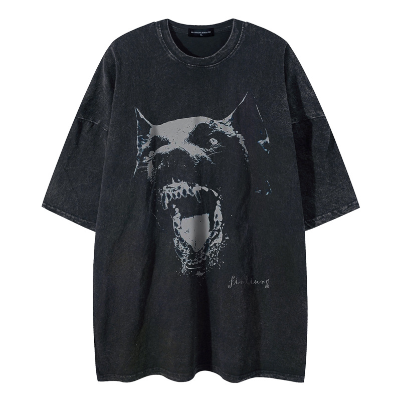 黑暗风重磅纯棉短袖T恤男夏新款潮宽松落肩袖圆领直筒体恤男