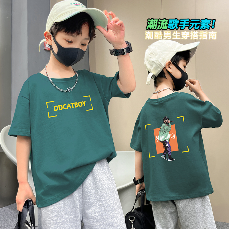 男童短袖夏季纯棉新款儿童半袖上衣洋气中小童酷帅宽松休闲T恤潮