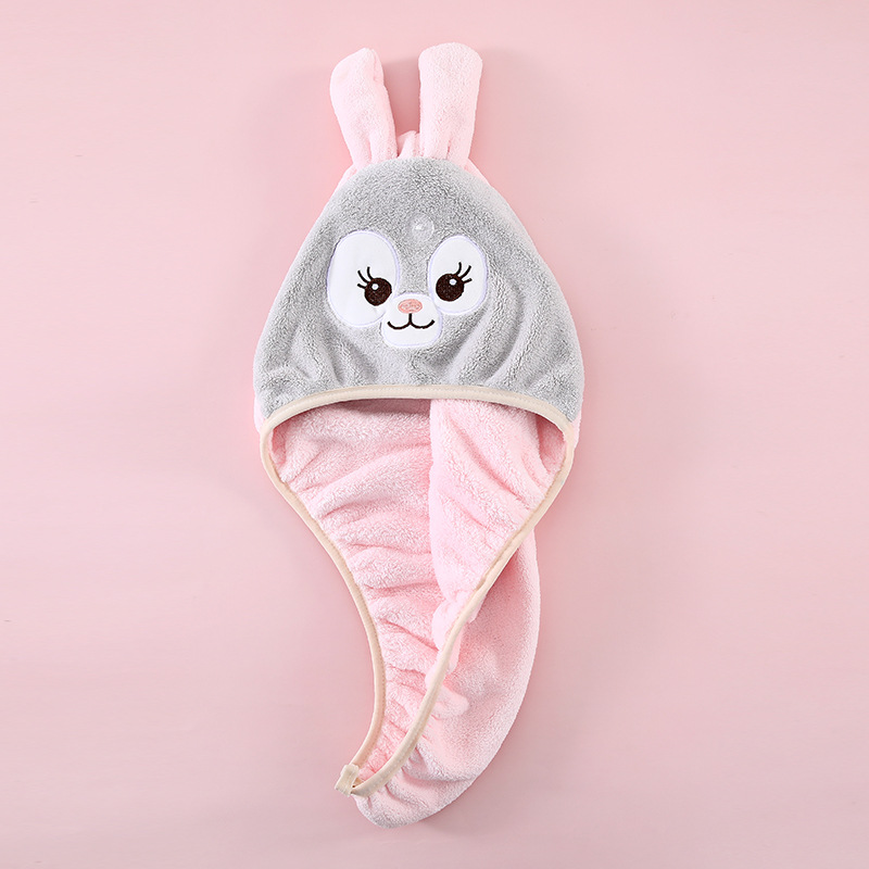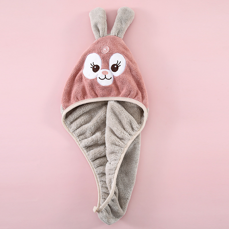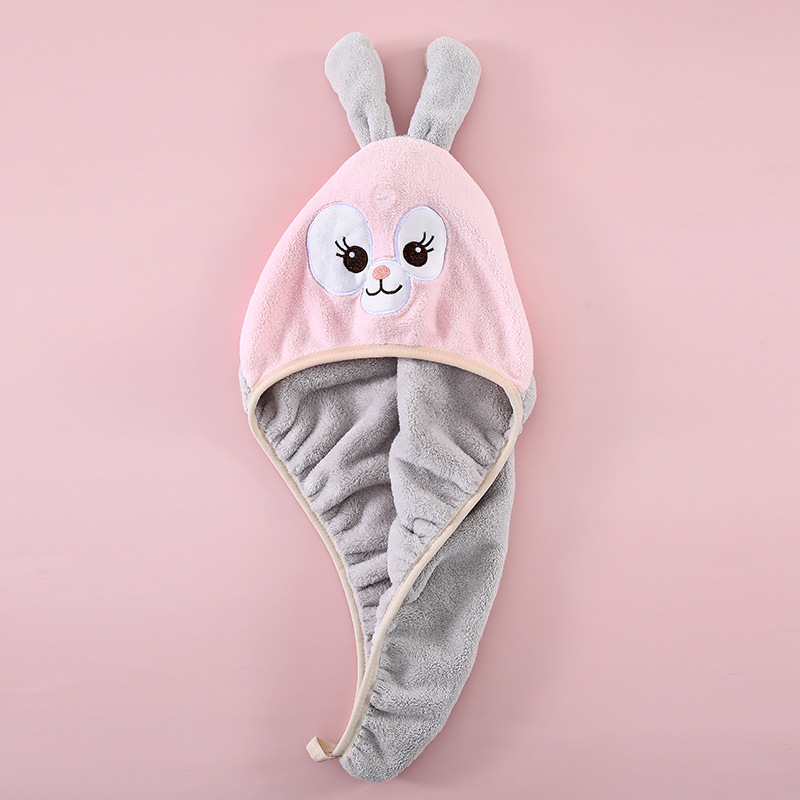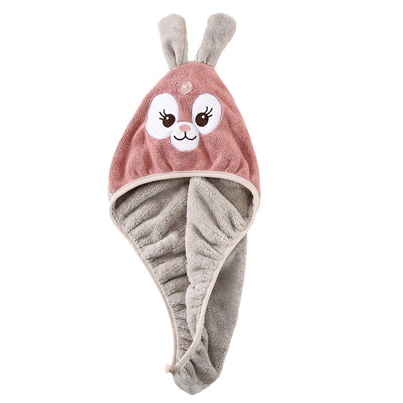 新款卡通可爱兔耳朵珊瑚绒包头干发帽吸水性好成人洗澡头巾浴帽