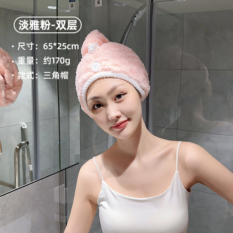 双层云朵绒干发帽螺纹包边干发巾擦发毛巾成人加厚包头巾吸水速干