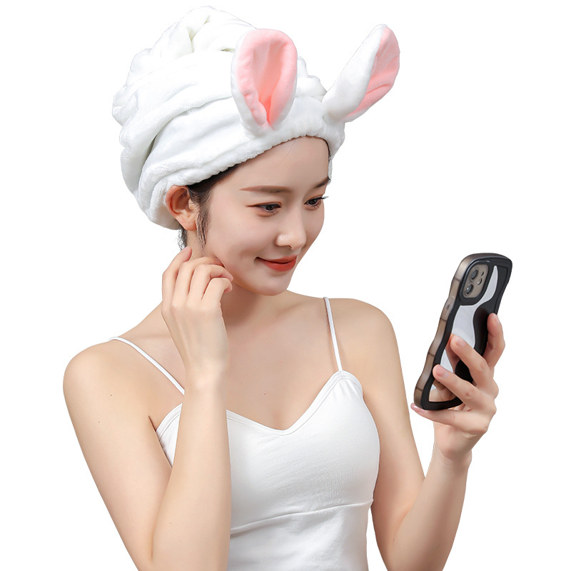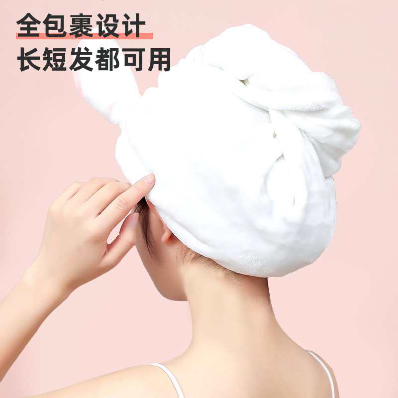 干发帽女 兔耳朵加厚珊瑚绒女吸水速干超细纤维干发巾包头巾