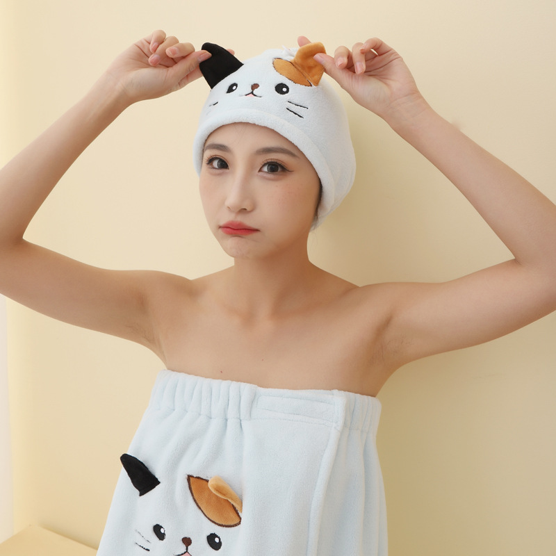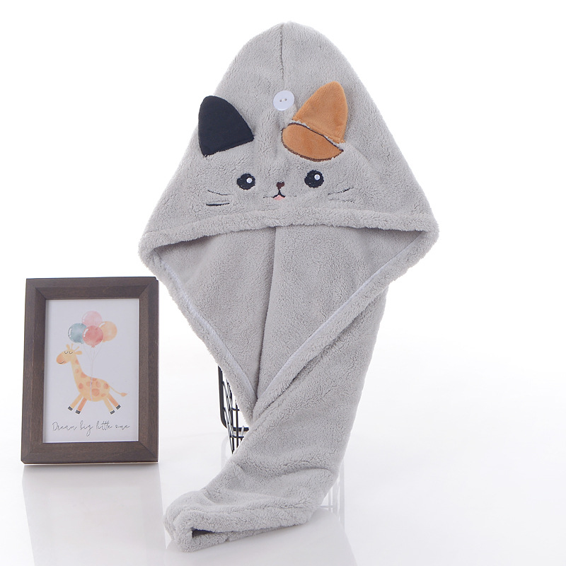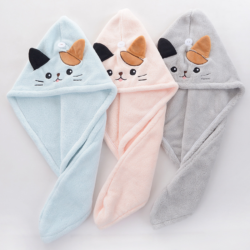 新款ins风卡通萌萌猫可爱干发帽女 珊瑚绒双层加厚吸水速干干发巾