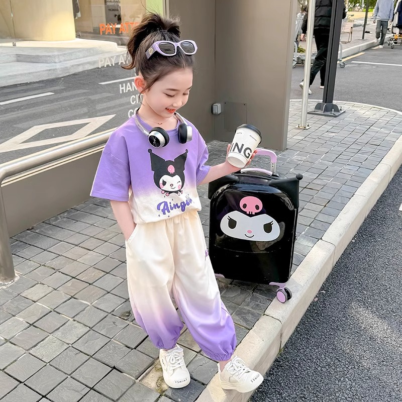 女宝宝卡通短袖套装夏天2025新款库洛米女童装渐变儿童夏装两件套