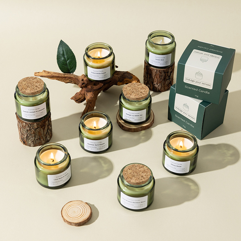 ins跨境定家用制香薰蜡烛清新淡雅绿色大豆蜡玻璃杯婚礼香氛蜡烛