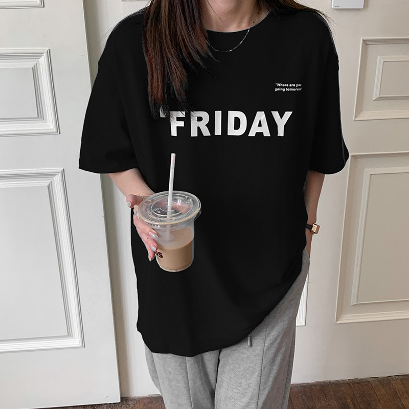 夏季纯棉字母印花短袖T恤女宽松BF风百搭半袖港风chic上衣潮
