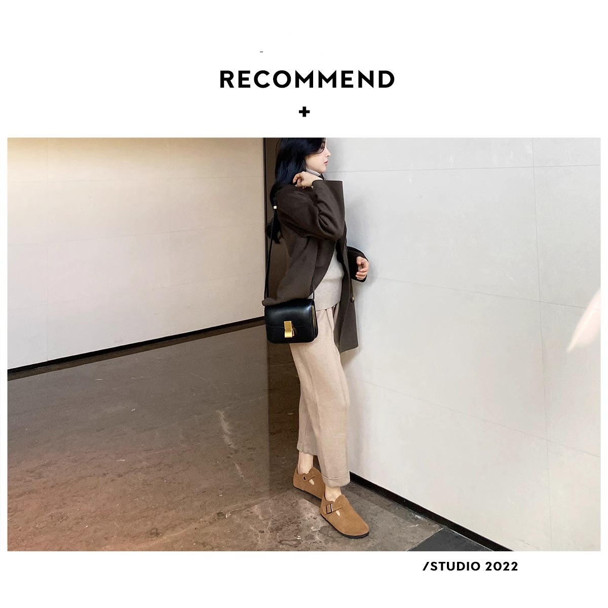 谷韵丨单鞋磨砂年春季复古勃肯鞋女一脚蹬休闲鞋平底豆豆鞋女