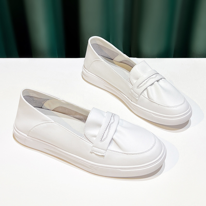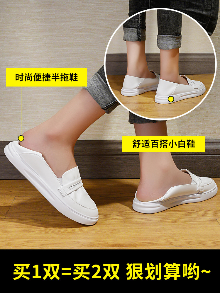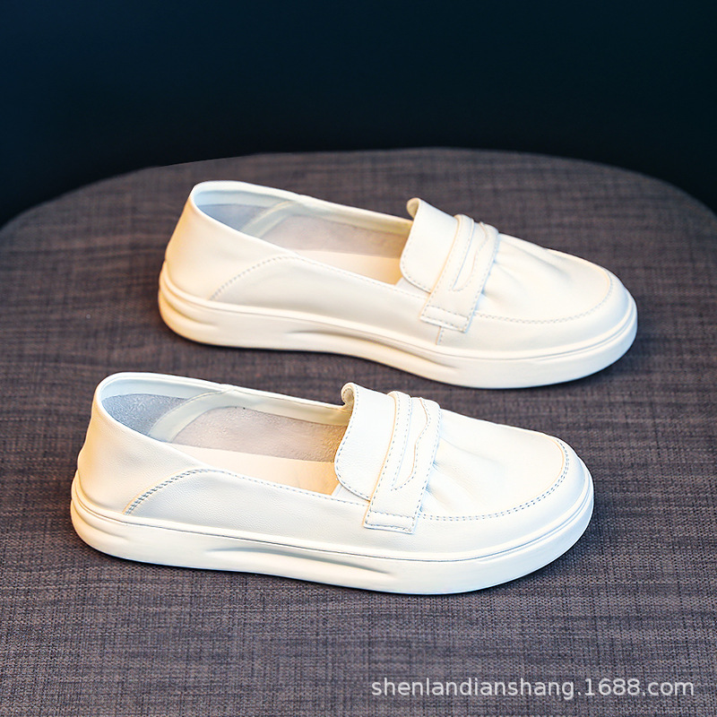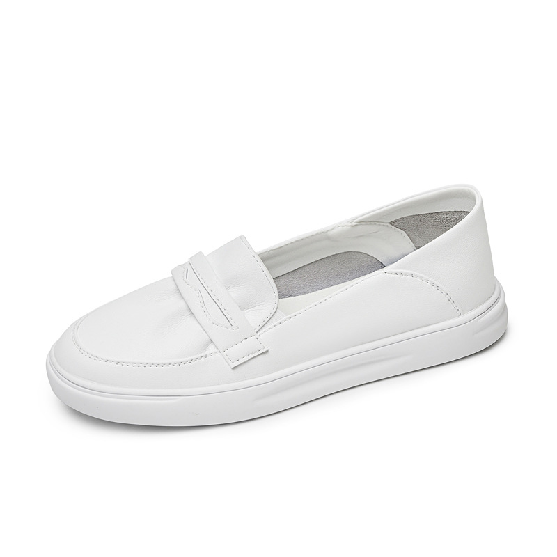 小白女鞋年新款平底单鞋夏款真皮护士孕妇一脚蹬皮鞋夏季豆豆