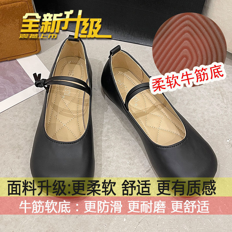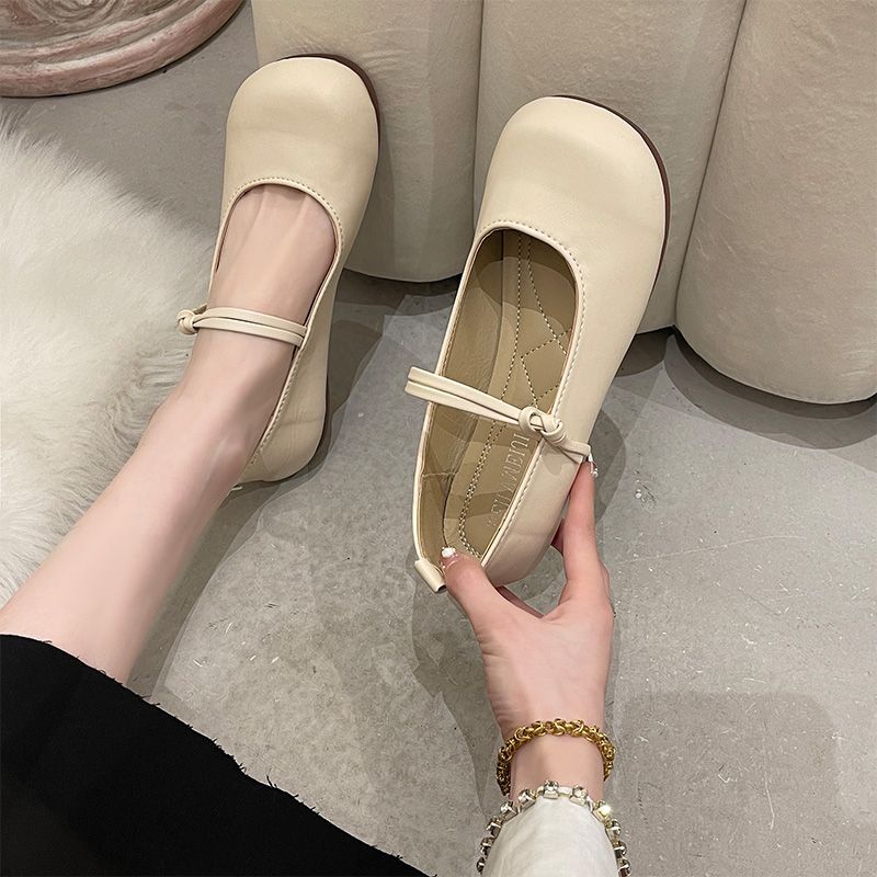 圆头豆豆鞋女软底年春夏新款一字扣温柔晚晚平底仙女浅口单鞋