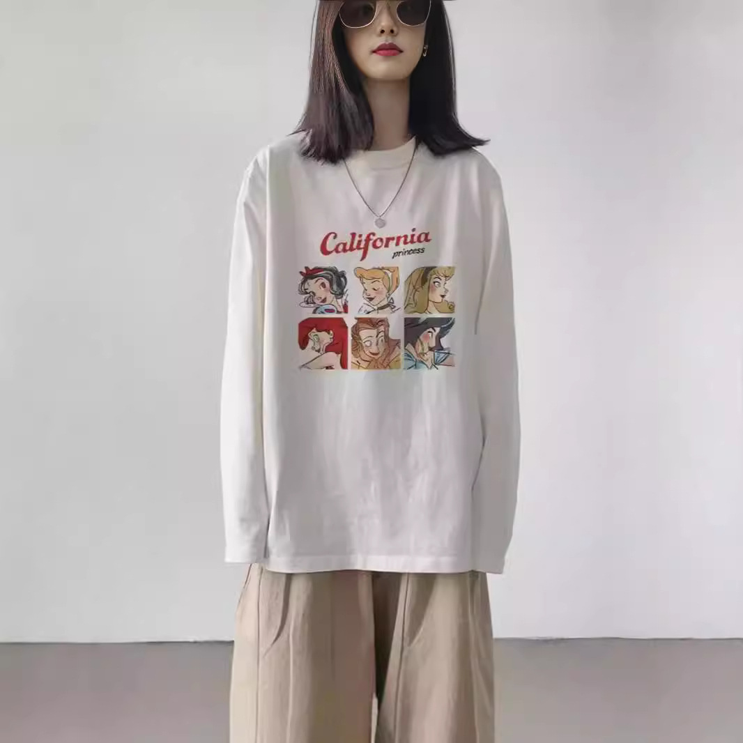 大码胖mm纯棉白色t恤女长袖上衣宽松显瘦春秋薄款内搭打底衫ins潮