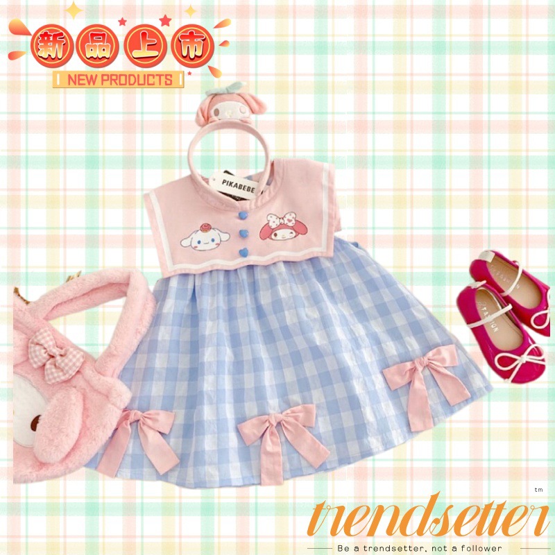 夏季新款美乐蒂女宝宝可爱甜美无袖公主裙女童粉蓝格子卡通娃娃潮