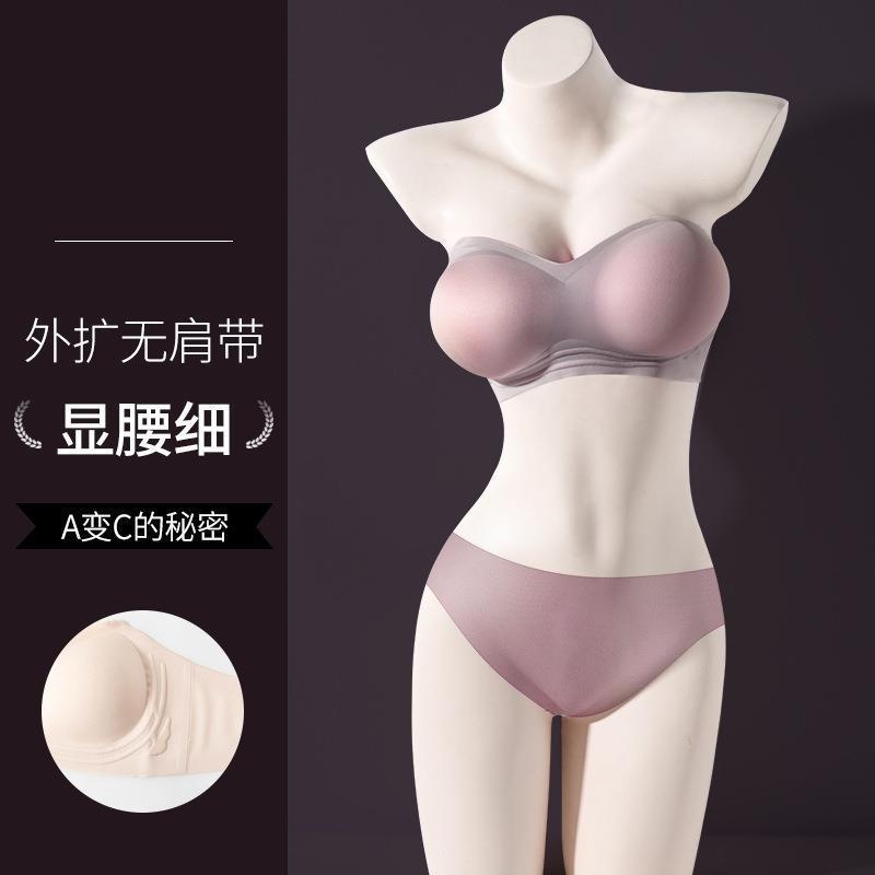 无肩带外扩内衣女夏季薄款小胸聚拢无钢圈文胸抹胸防滑隐形防走光