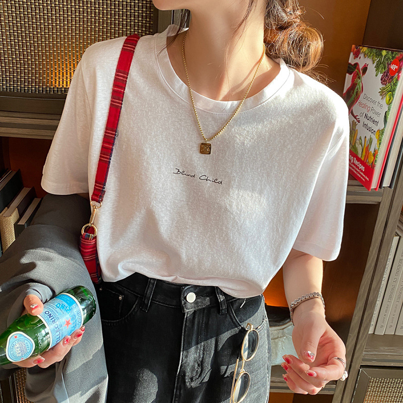 冰丝短袖t恤女基础简约夏季新款宽松显瘦体恤白色棉麻上衣