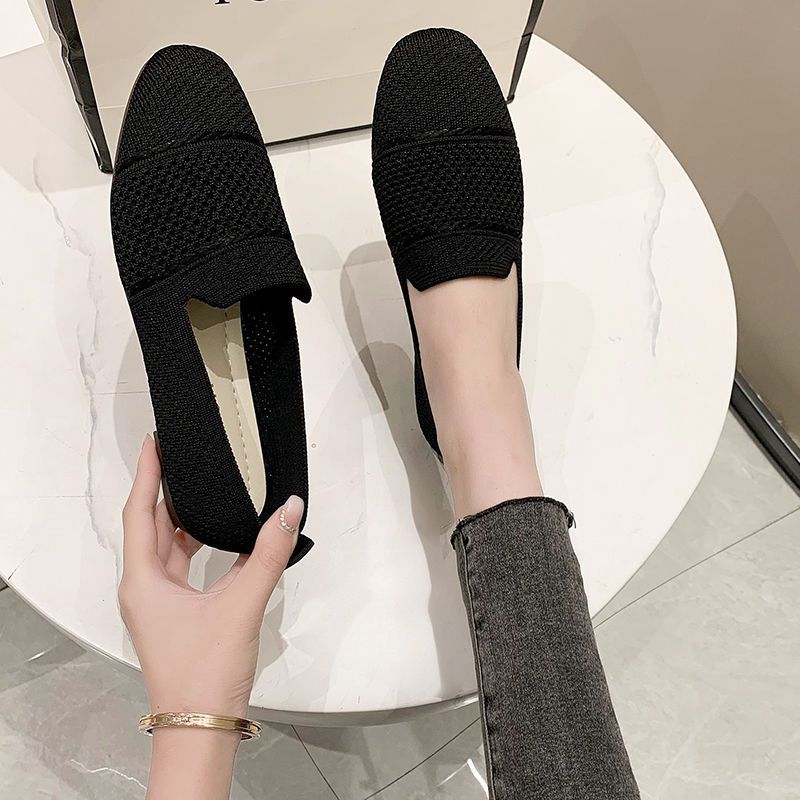 女鞋新款飞织透气休闲鞋平底鞋工作鞋网鞋软底豆豆鞋女士单鞋