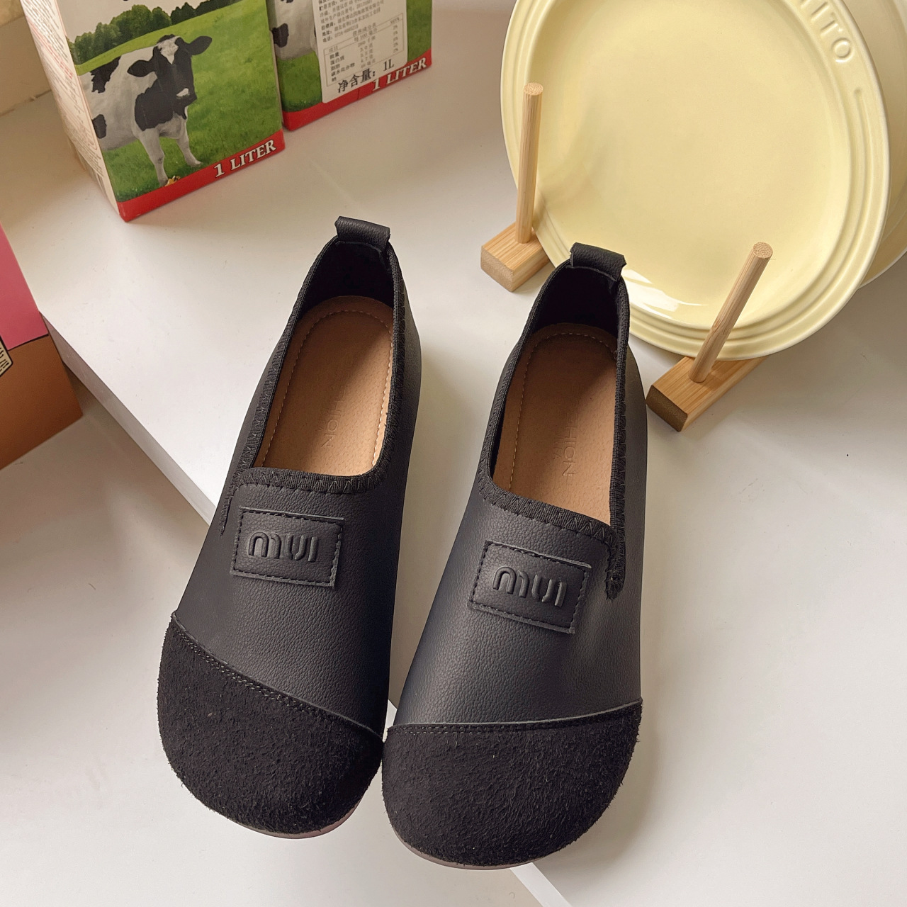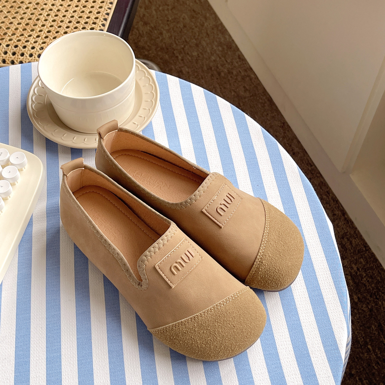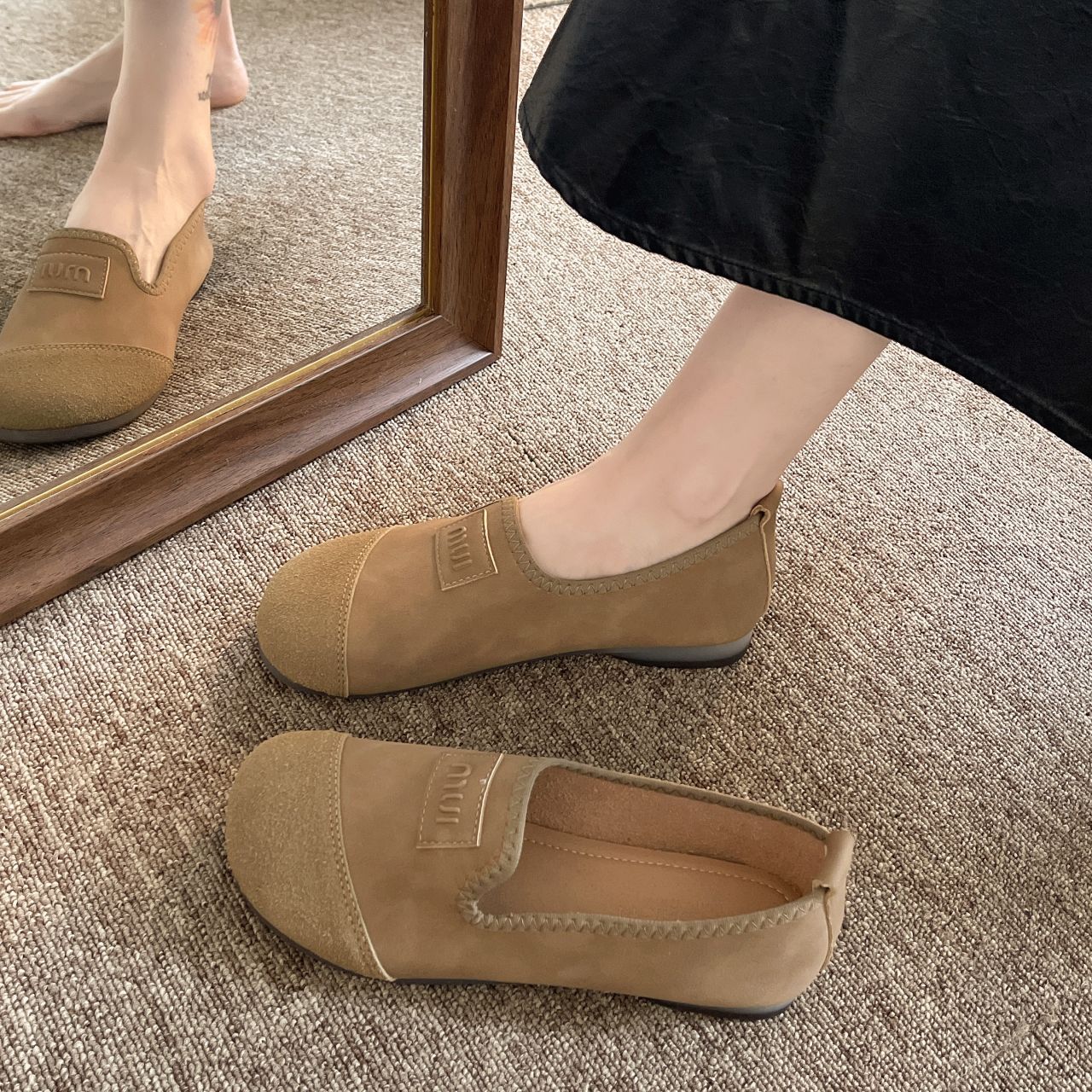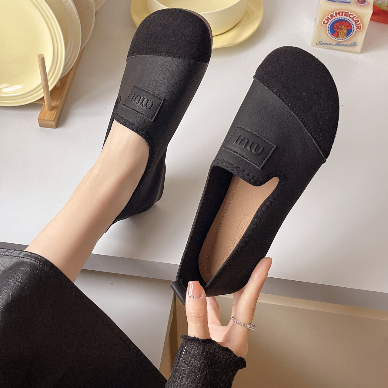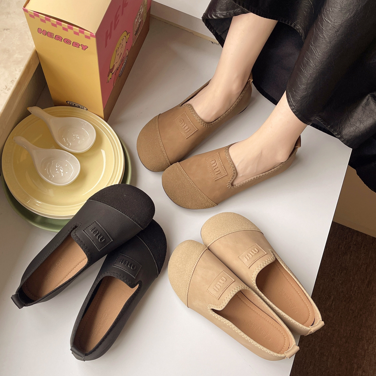 复古软底豆豆鞋女春夏新款一脚蹬懒人鞋休闲透气软皮低跟单鞋