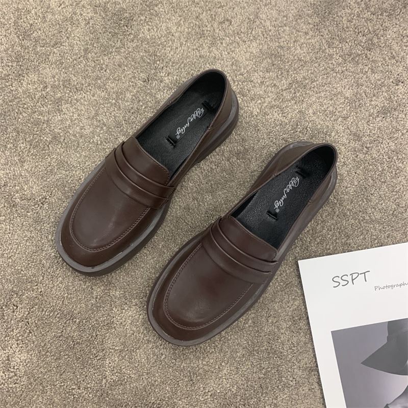 英伦风小皮鞋女春秋新款平底鞋女单鞋复古一脚蹬豆豆鞋乐福鞋
