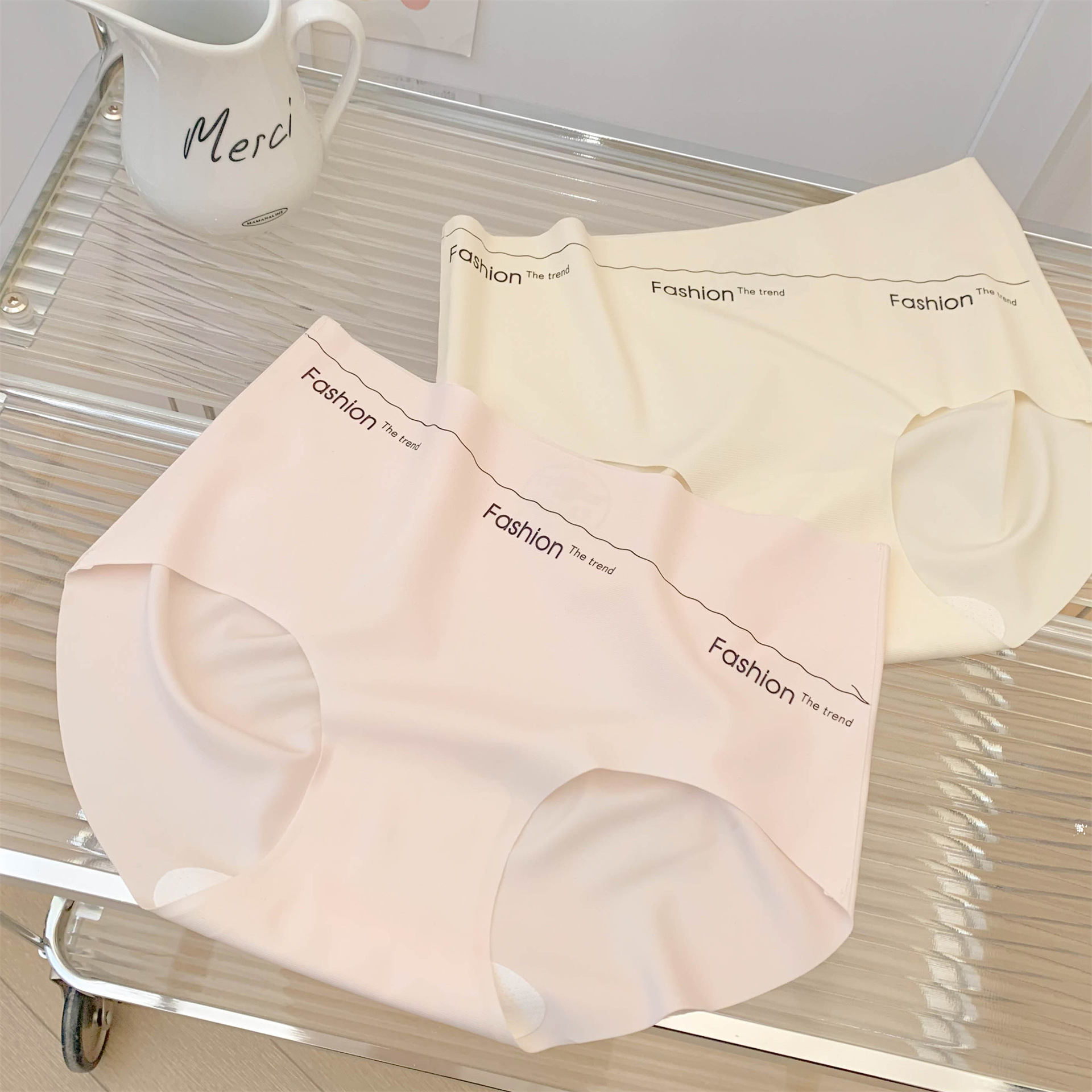 零感蜜桃臀~一片式无痕女士高腰内裤女夏季薄款冰丝女生简约透气