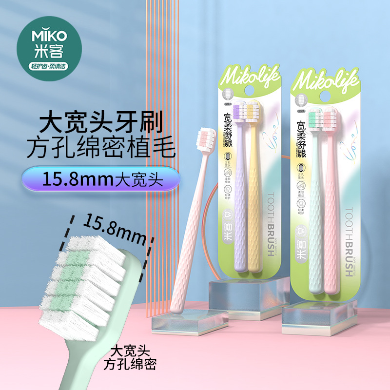 成人软毛牙刷大宽头马卡龙色洁净牙齿呵护牙龈双面吸双支装
