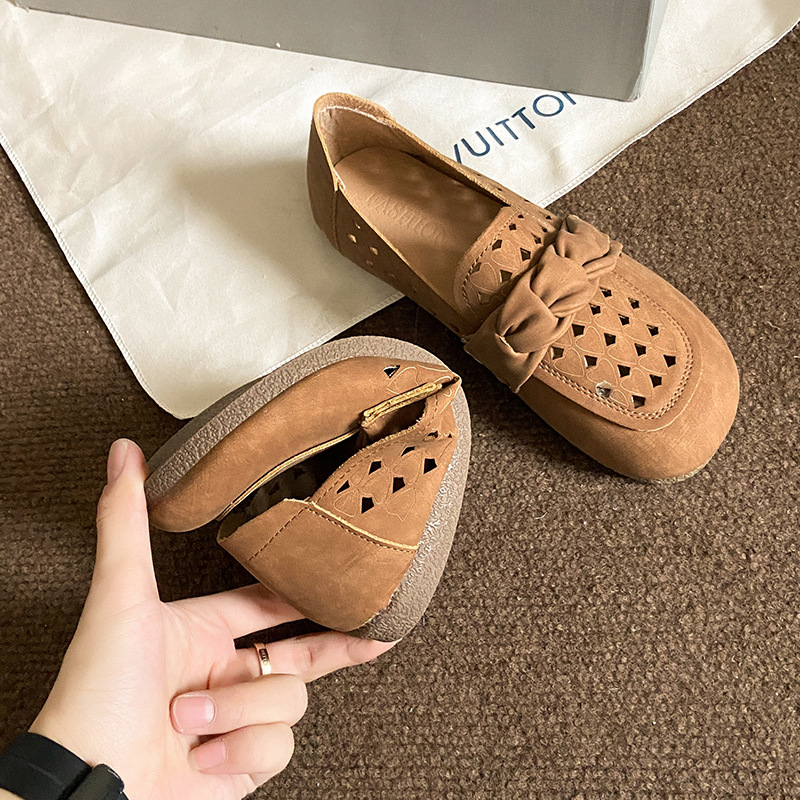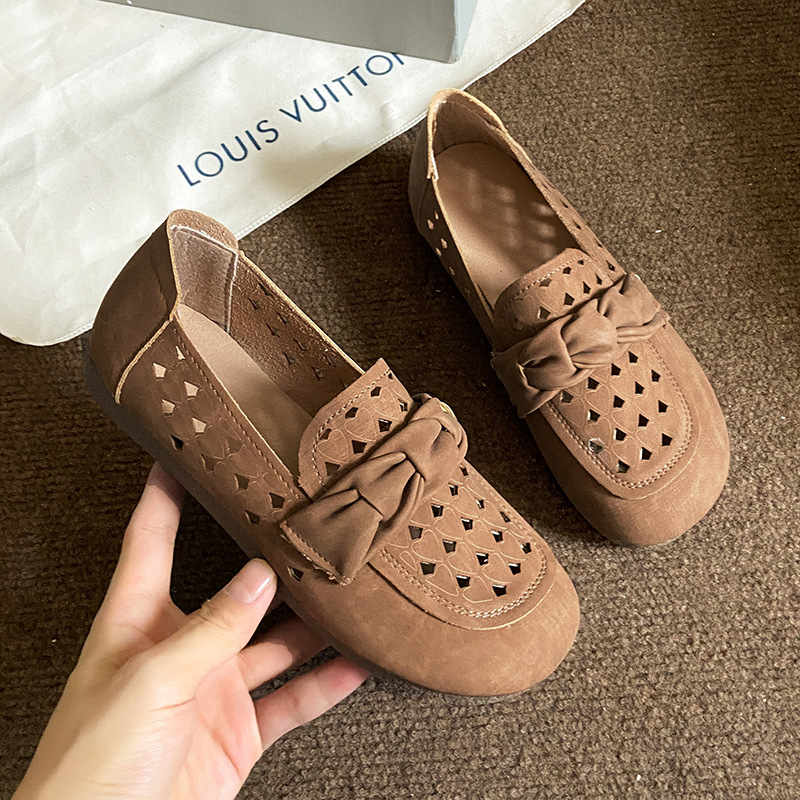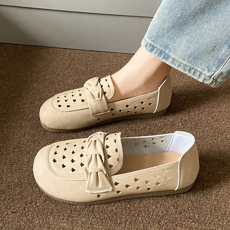韩版软底镂空单鞋女春夏季一脚蹬女鞋时尚懒人平底豆豆鞋