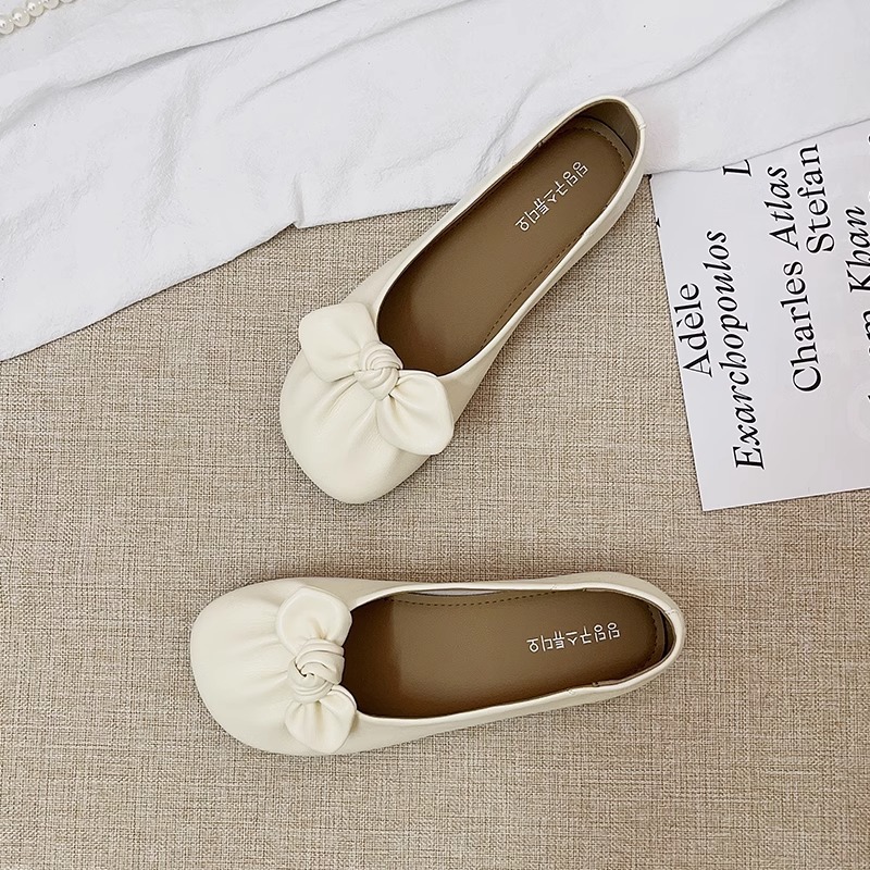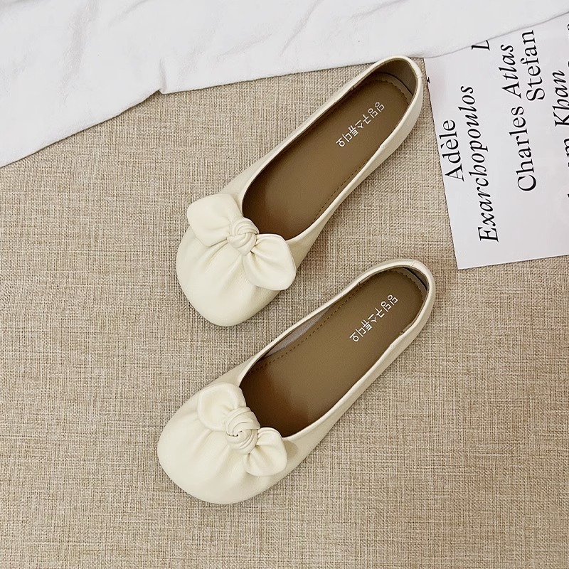 复古奶奶鞋女夏平底新款浅口软底配裙豆豆鞋一脚蹬蝴蝶结单鞋