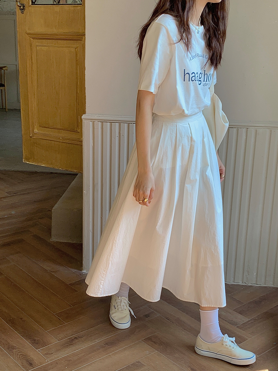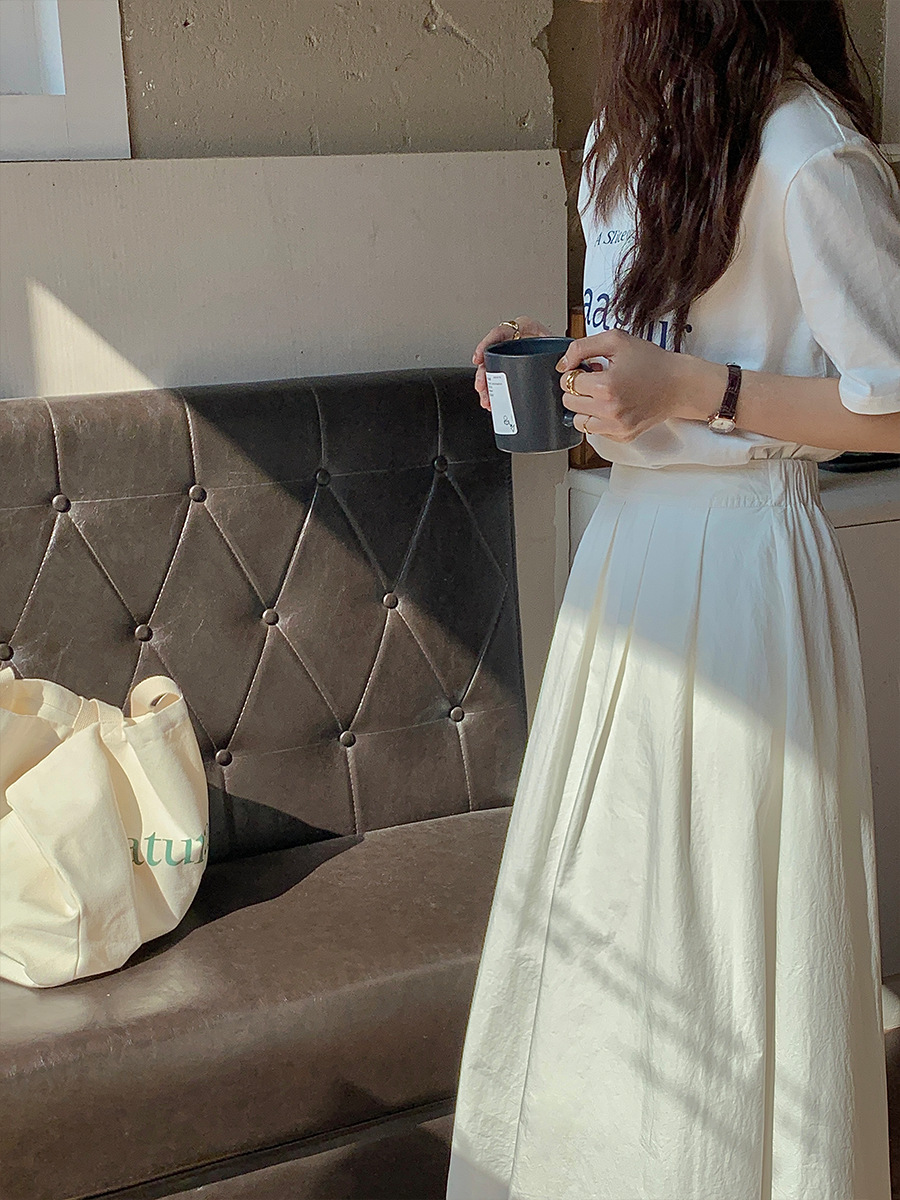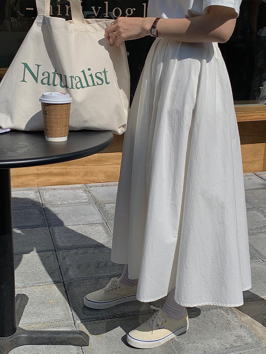 广州薇颂 半身裙女新款韩系大裙摆高腰中长款A字百褶伞裙子