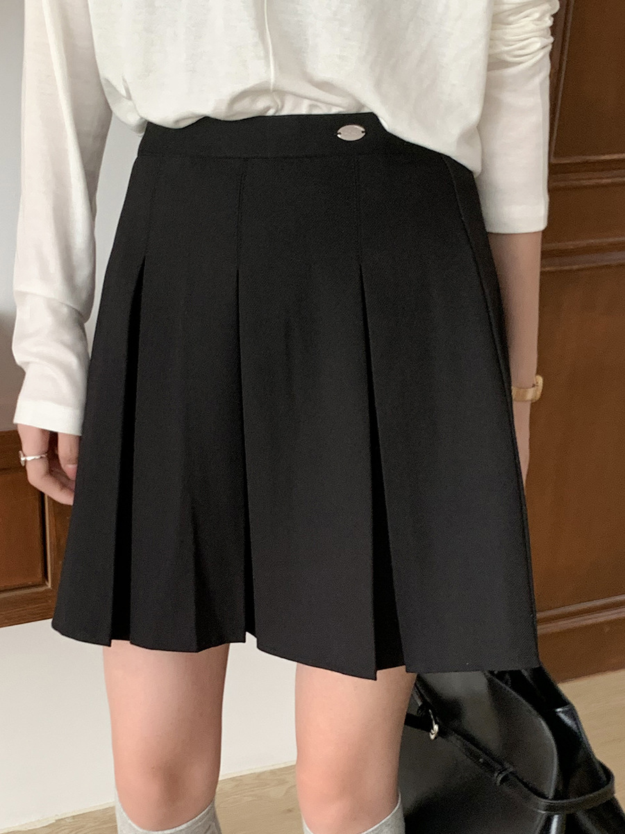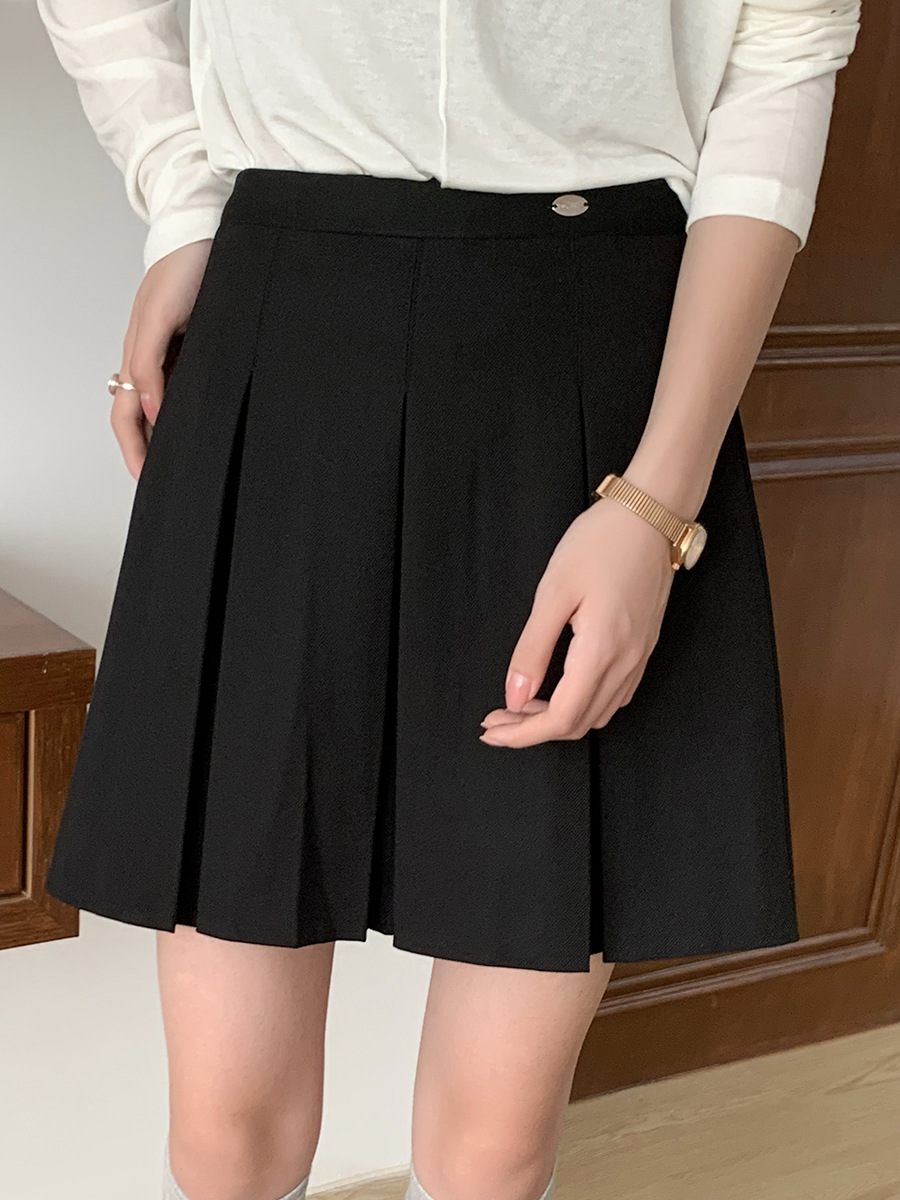 黎诺 韩系黑色百褶半身裙女春夏新款甜美百搭高腰显瘦中裙