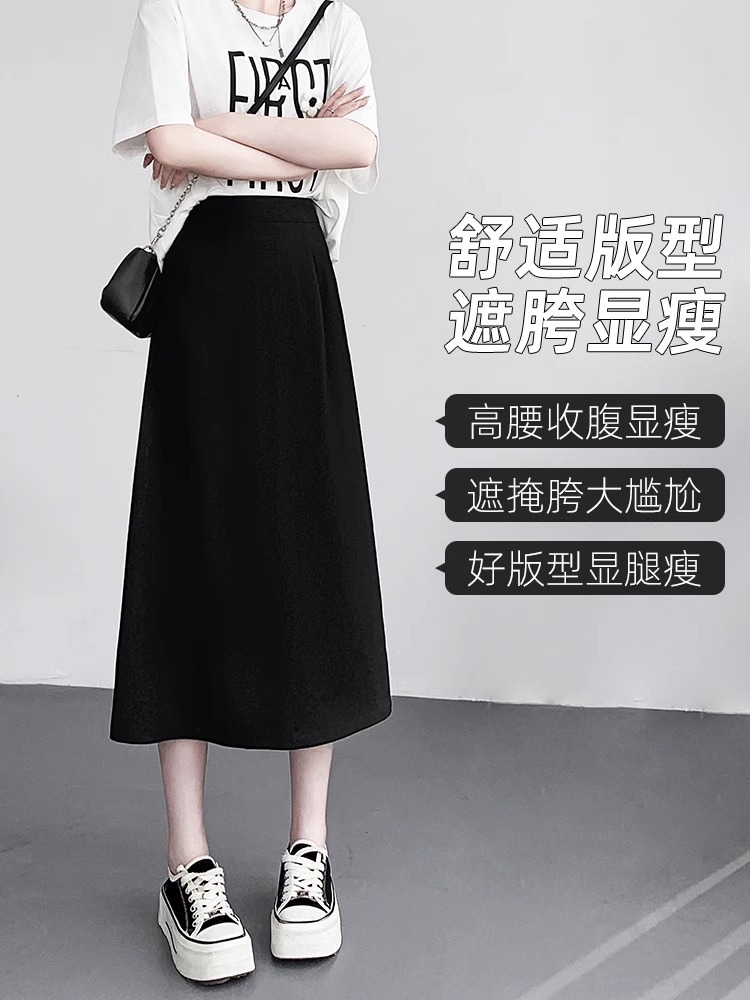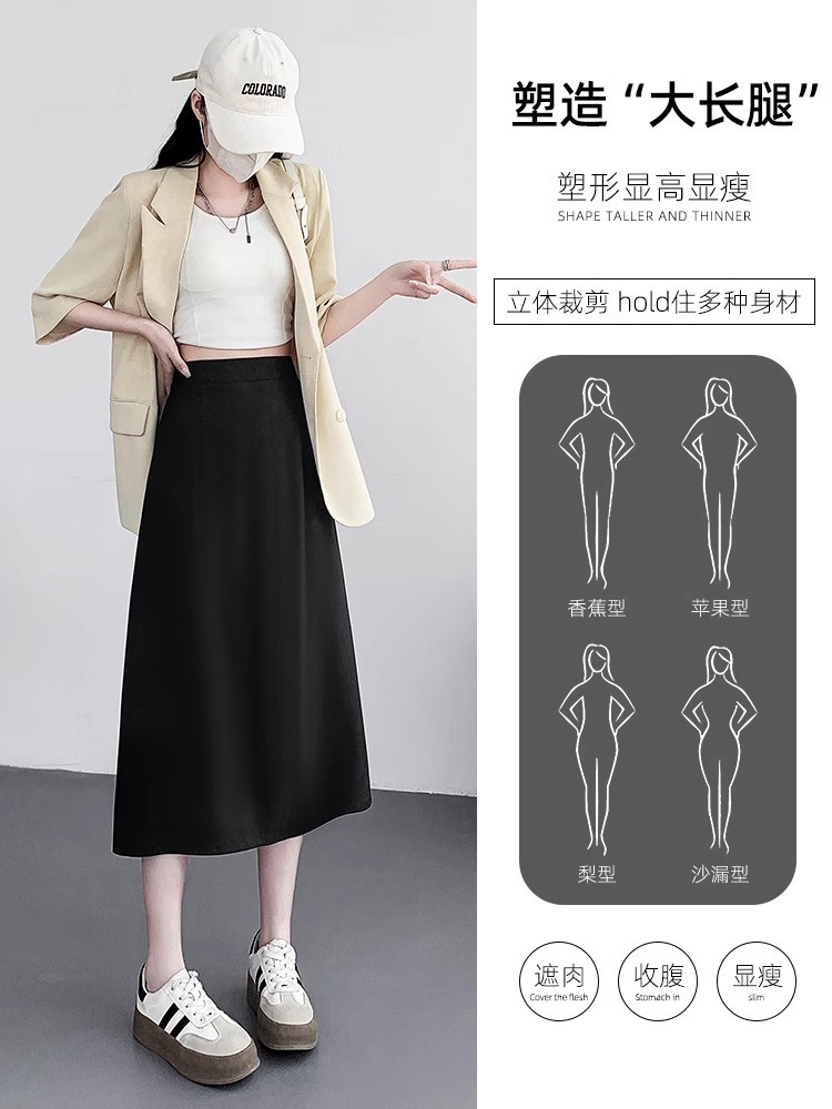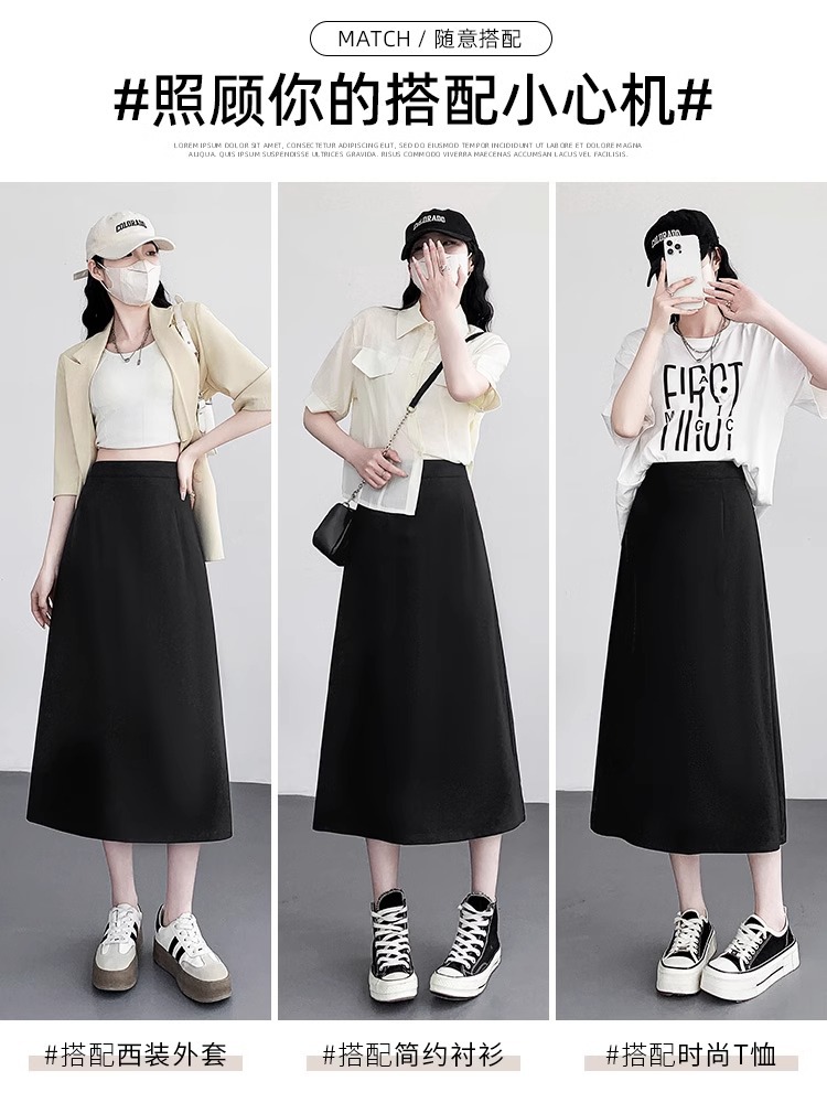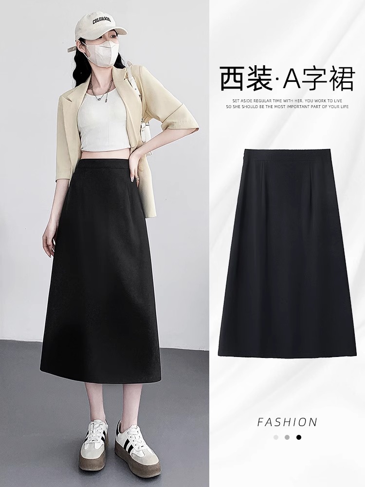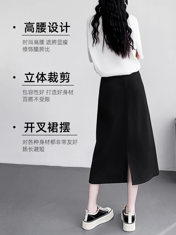 后开叉包臀半身裙女春夏新款高腰垂感黑色显瘦职业西装A字裙