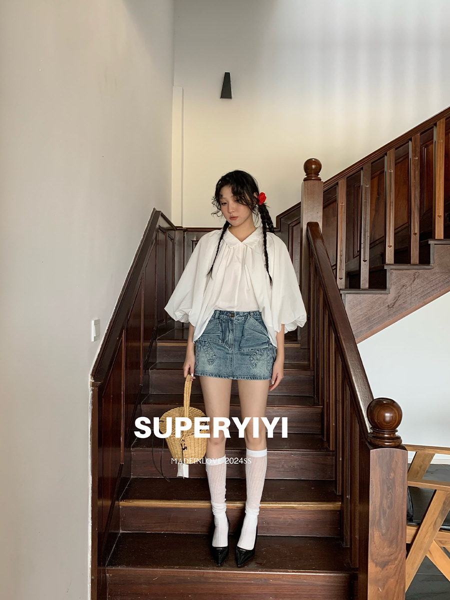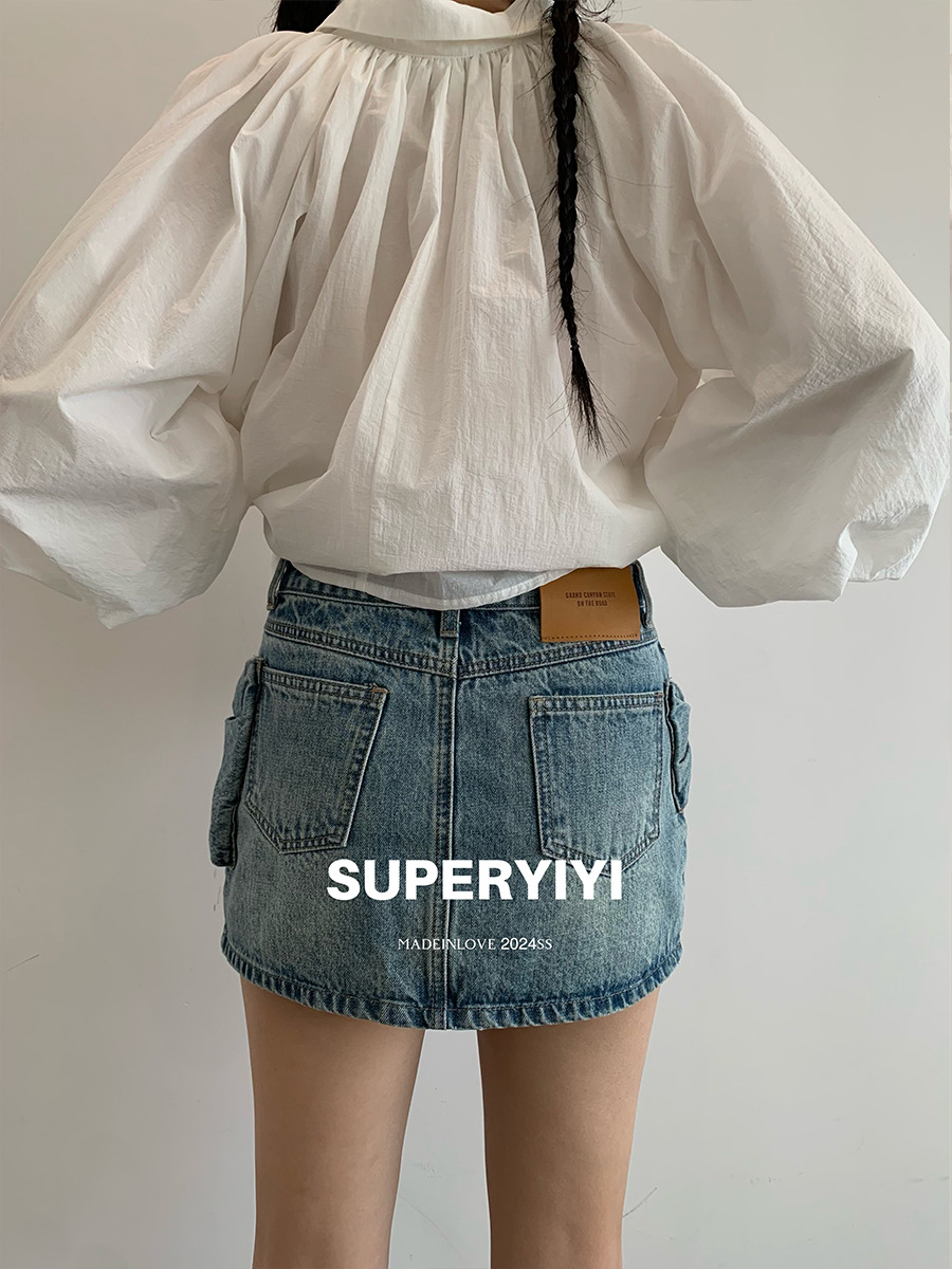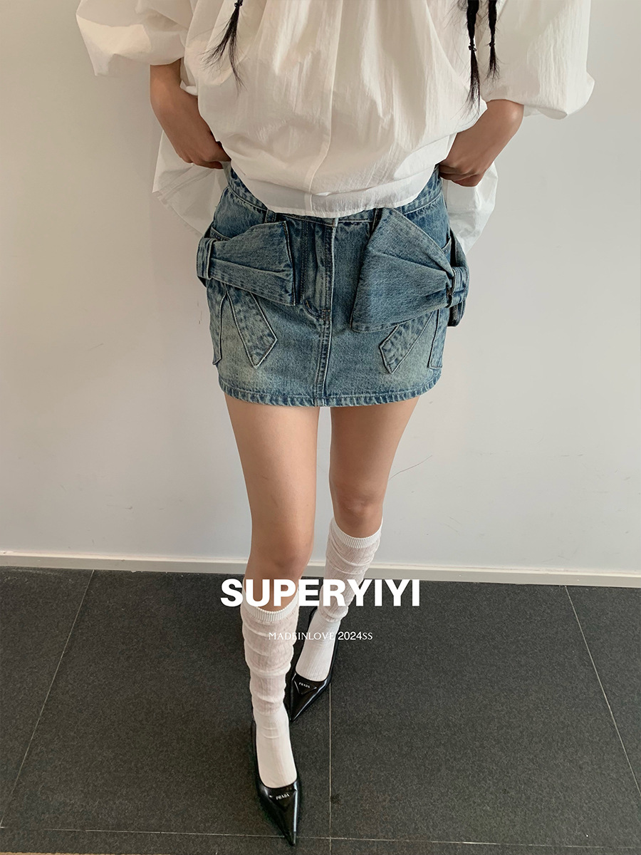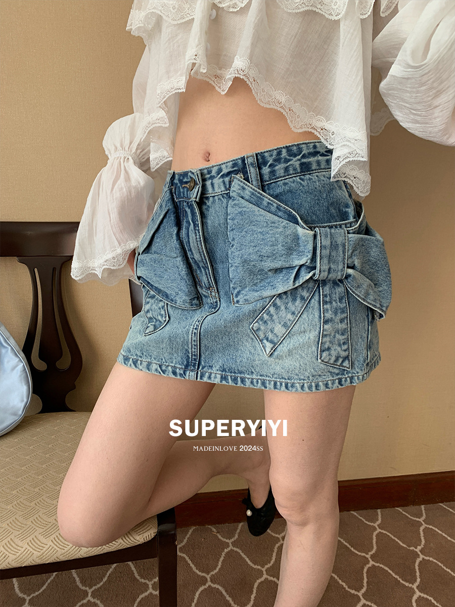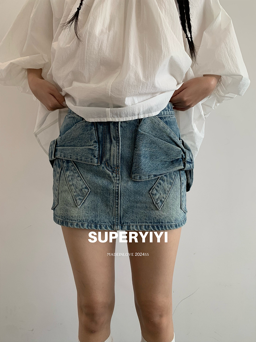 SUPERYIYI十三行春夏蝴蝶结装饰设计短裙休闲百搭牛仔半身裙22192