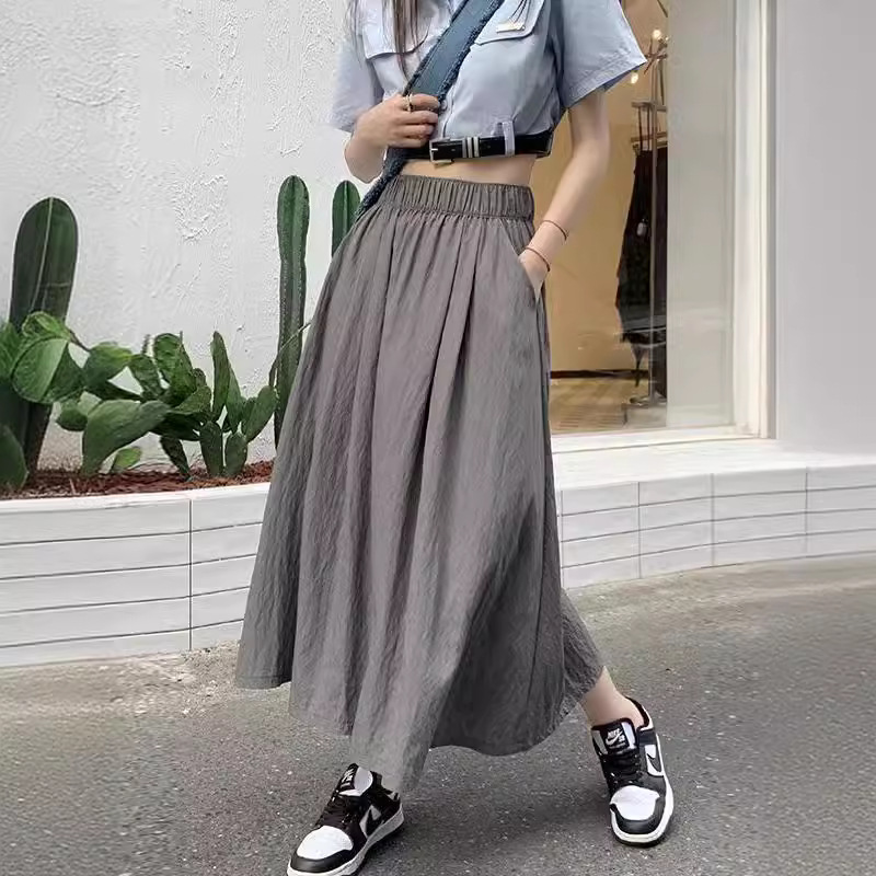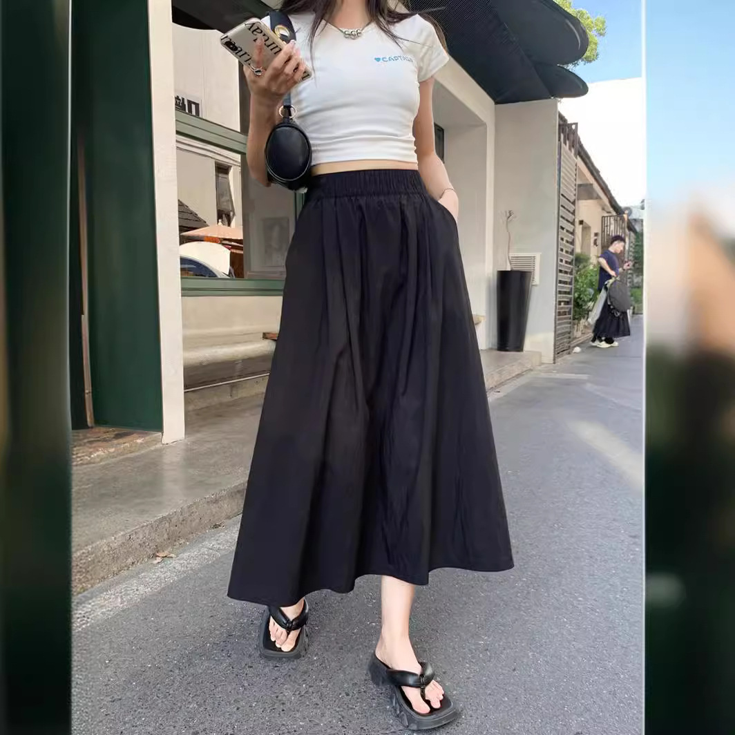 山本半身裙女夏季薄款慵懒风百搭中长裙褶皱过膝宽松大摆伞裙