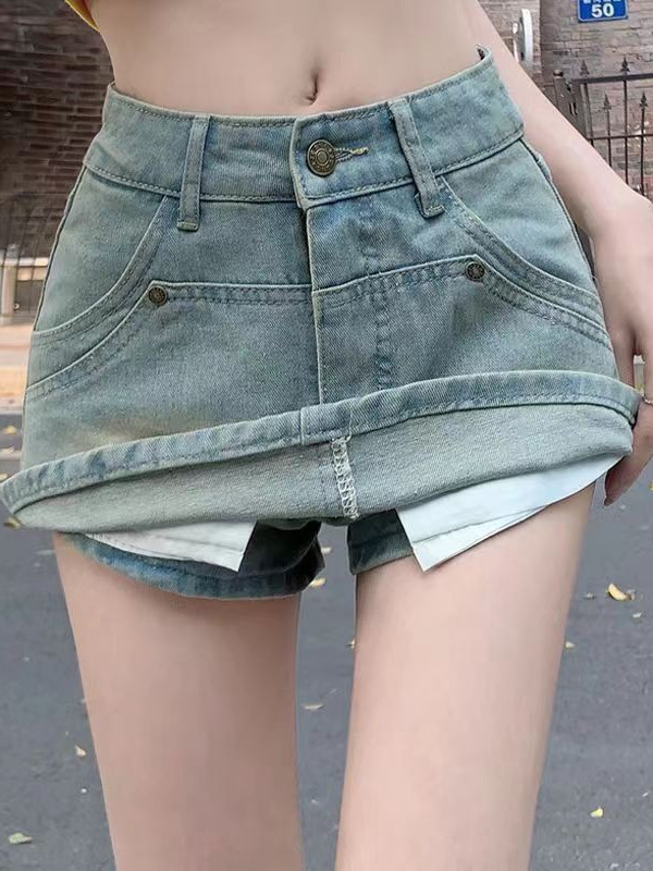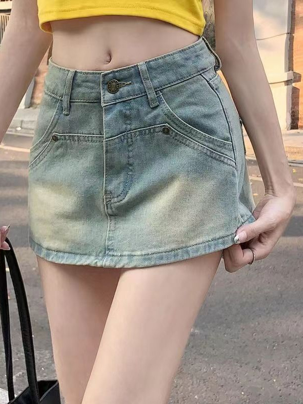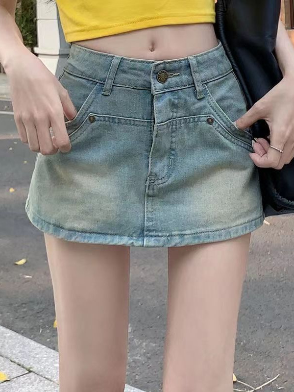 浅色复古牛仔半身裙女装春季防走光裙裤裙子高腰显瘦半裙包臀短裙