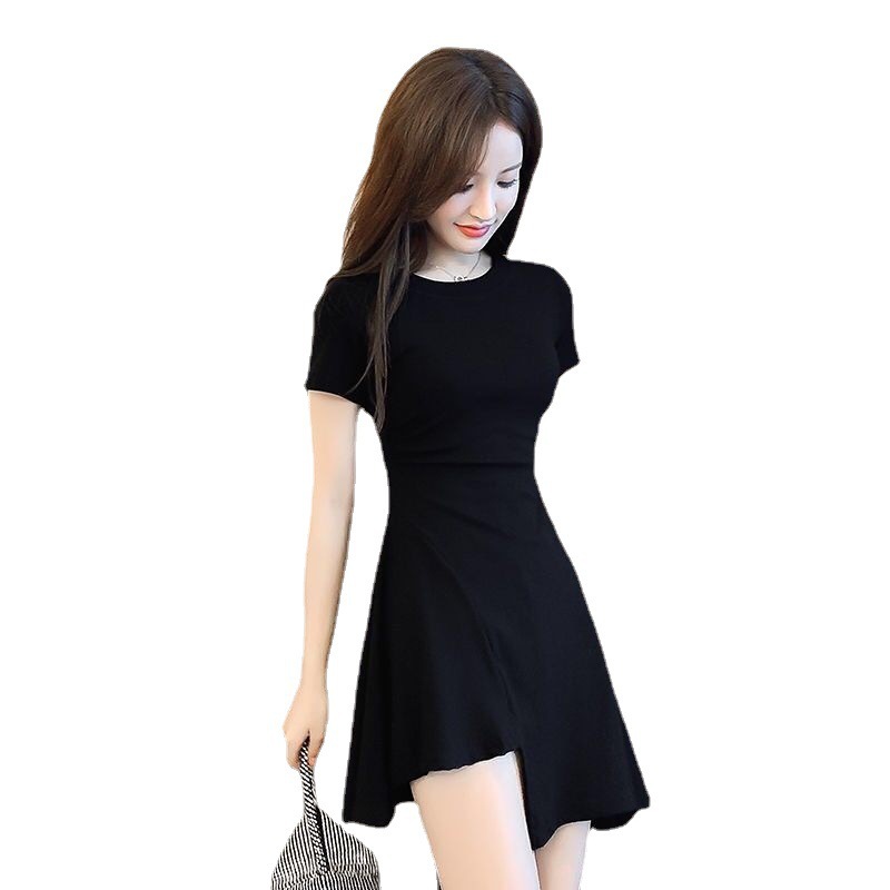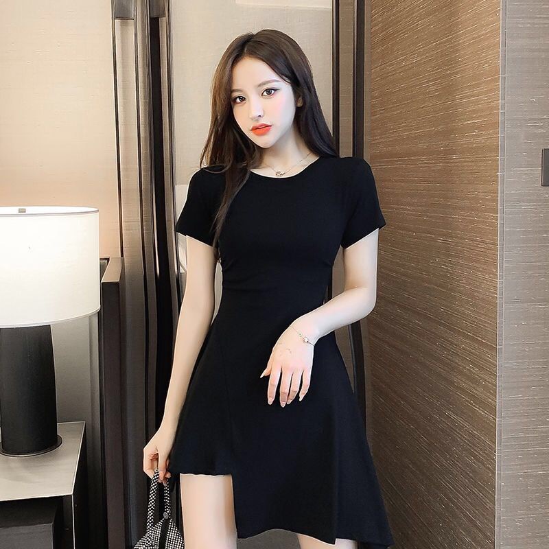 春秋流行赫本风小黑裙小个子修身显瘦不规则可盐可甜连衣裙女