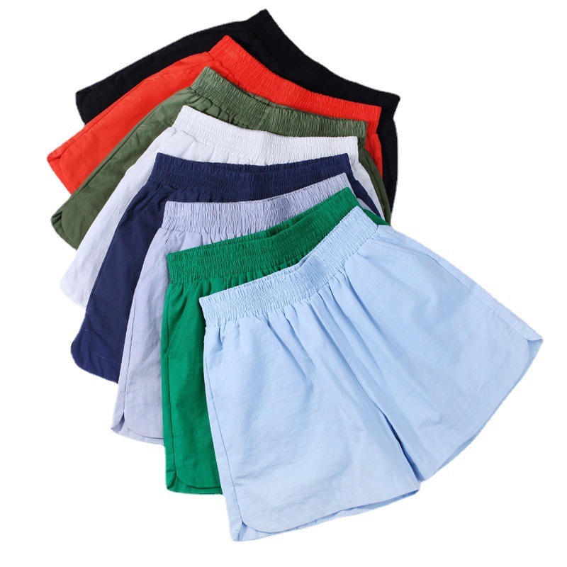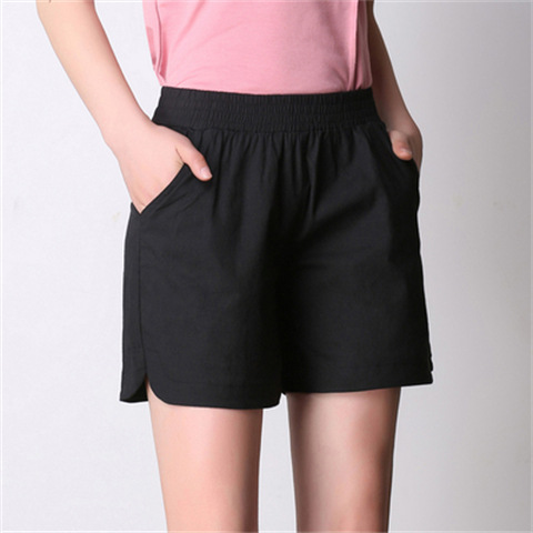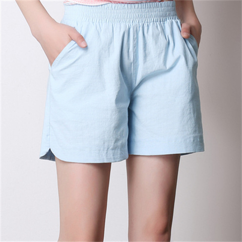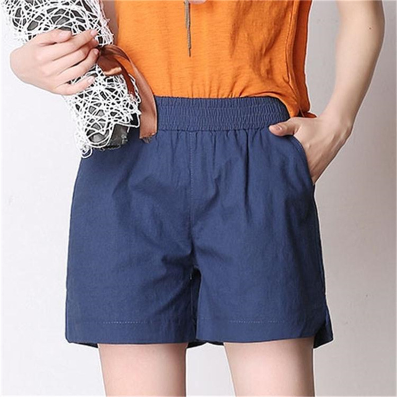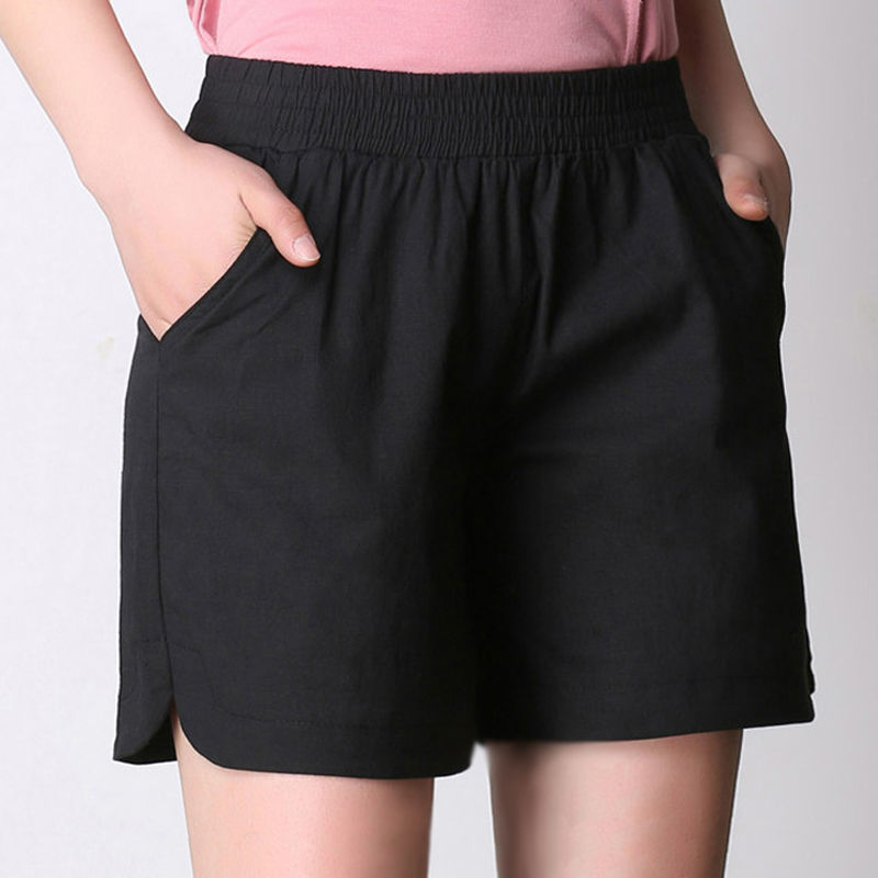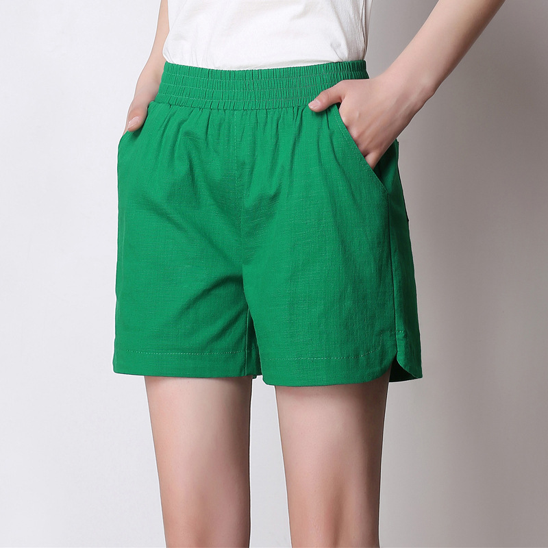 高腰棉麻短裤女夏外穿纯棉宽松显瘦松紧腰热裤大码薄款阔腿裤休闲
