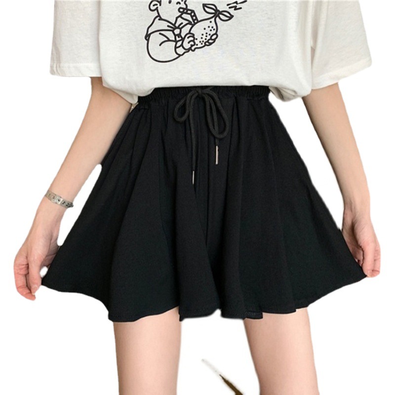 夏季新款韩版宽松显瘦百搭学生高腰抽绳休闲a字阔腿短裤女潮