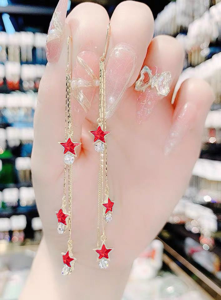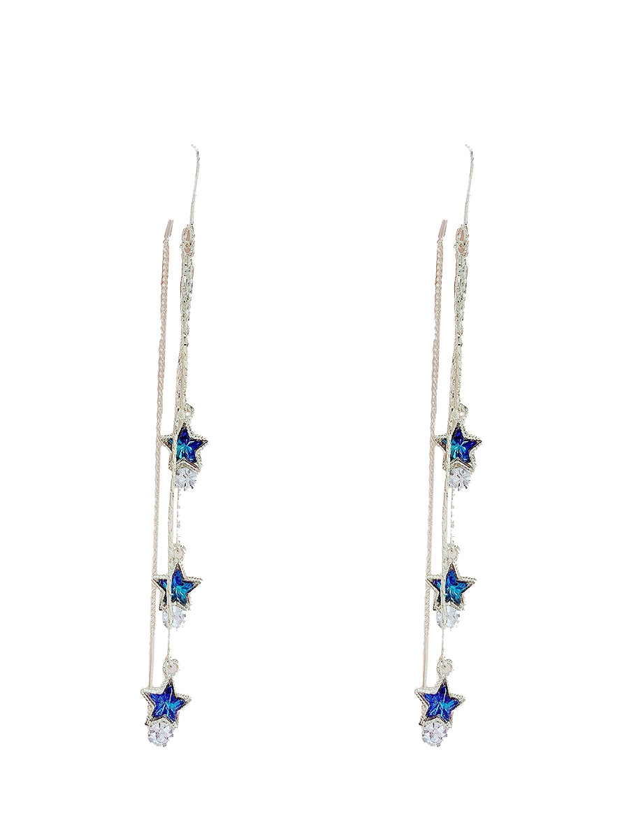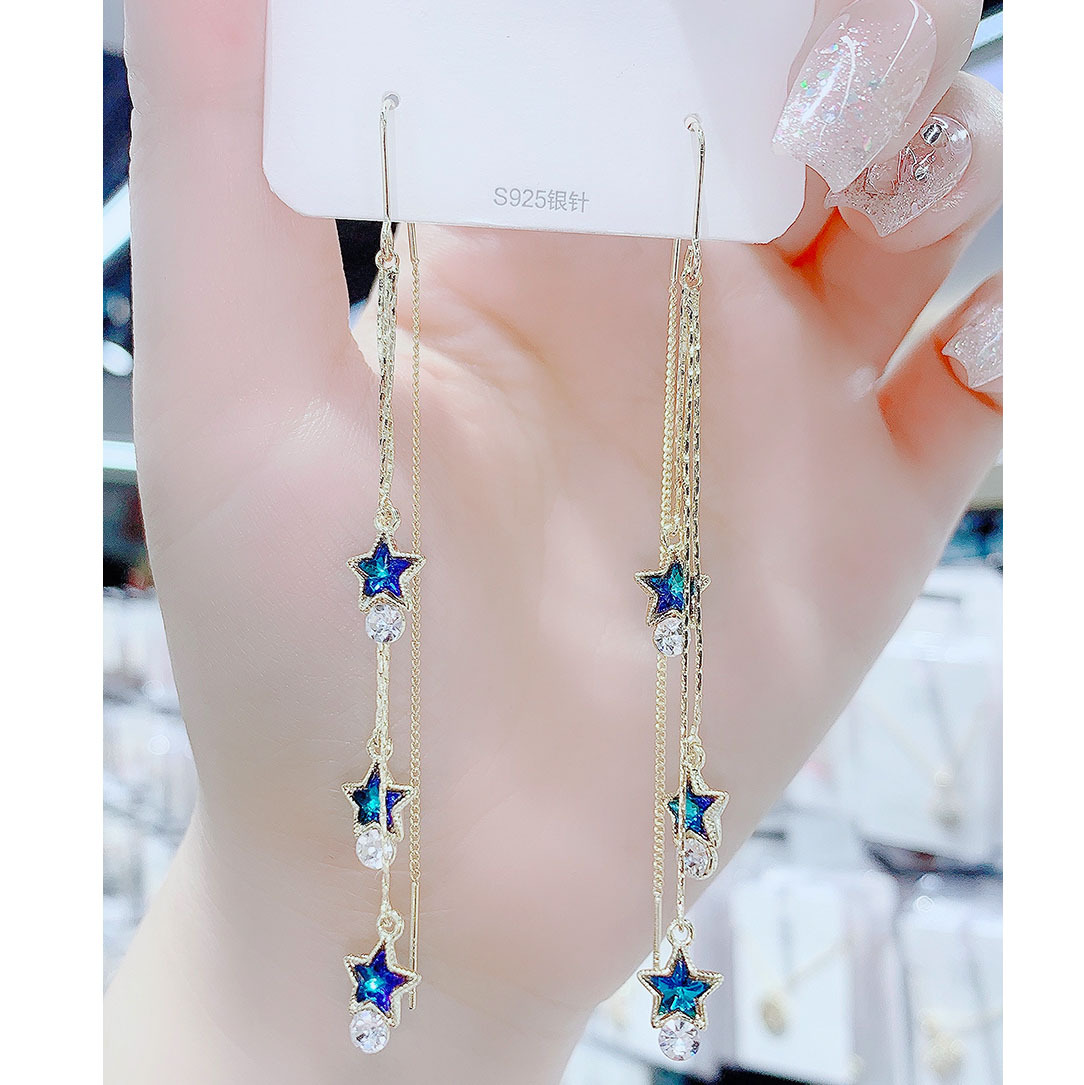 蓝色水晶五角星流苏耳线长款防丢耳环耳饰女日韩气质网红星星耳坠