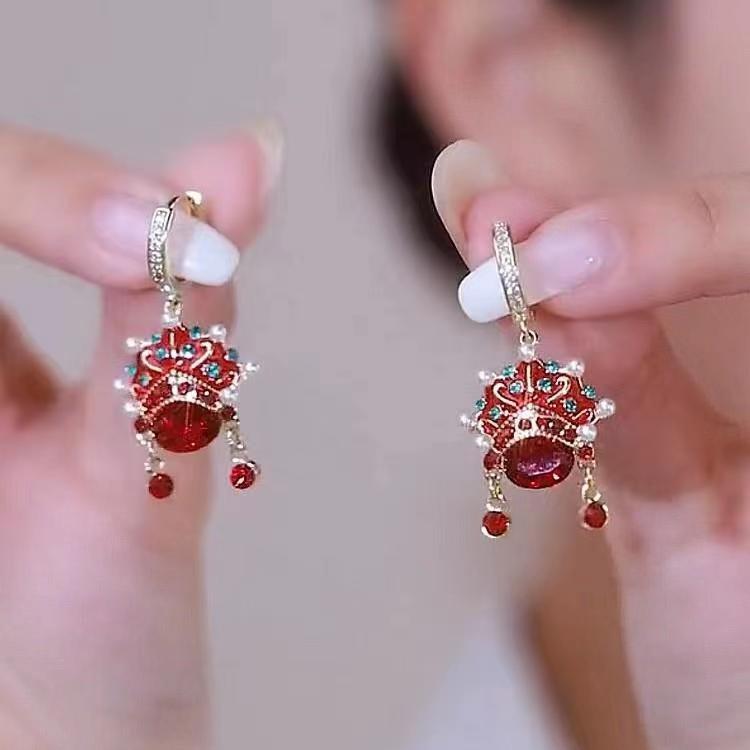 国风耳饰汉元素红色耳饰戏曲耳环花旦脸谱国潮中国风小众ins古风