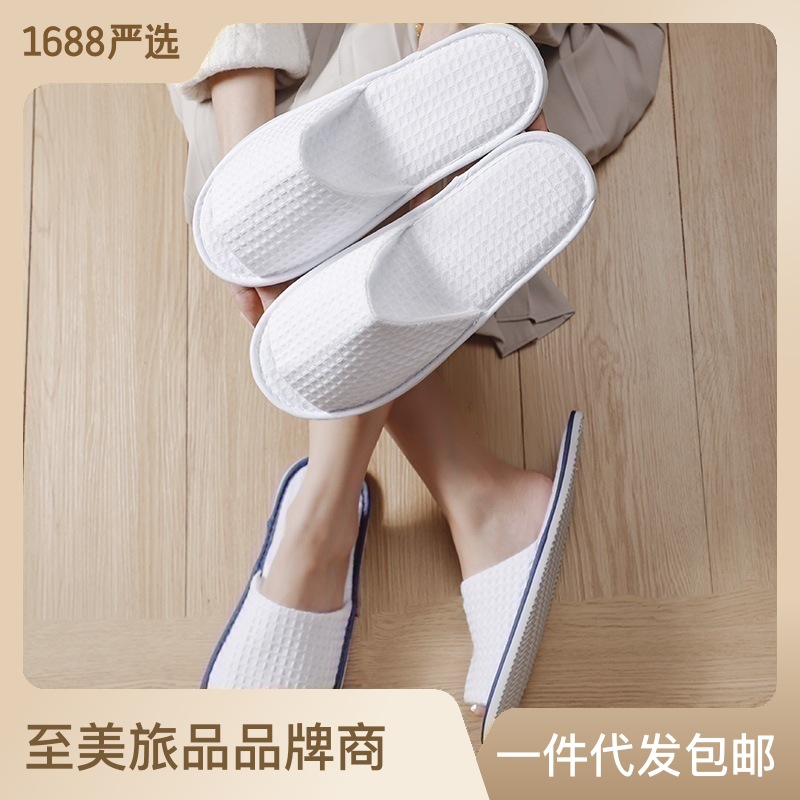 宾馆酒店民宿一次性半包拖鞋家居出差旅行便携白板华夫格拖鞋logo