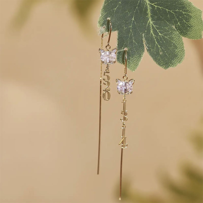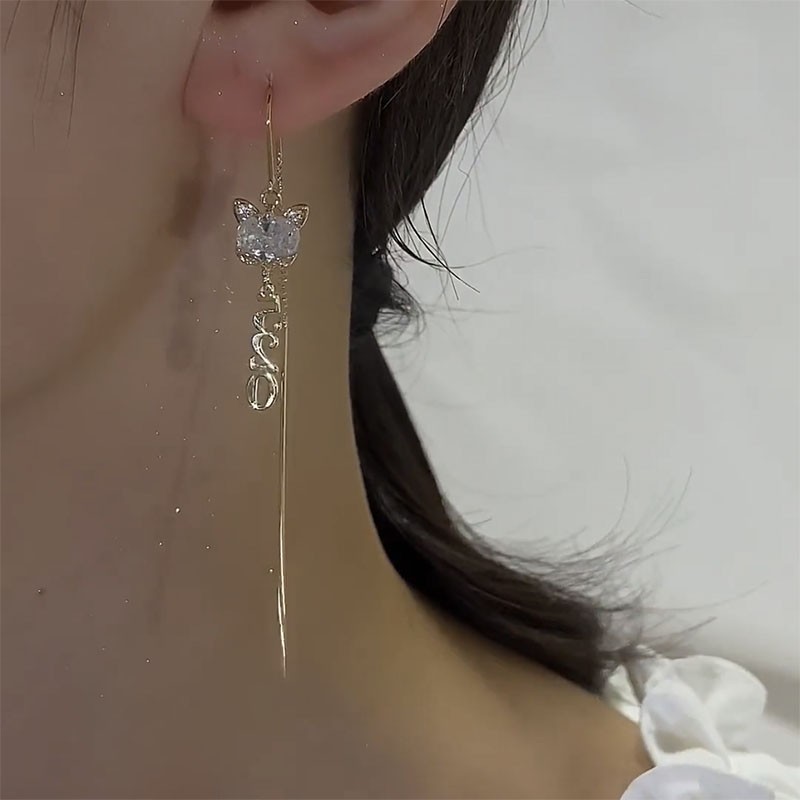 年新款潮韩国气质长款锆石狐狸耳线女显脸瘦流苏耳环防丢耳饰