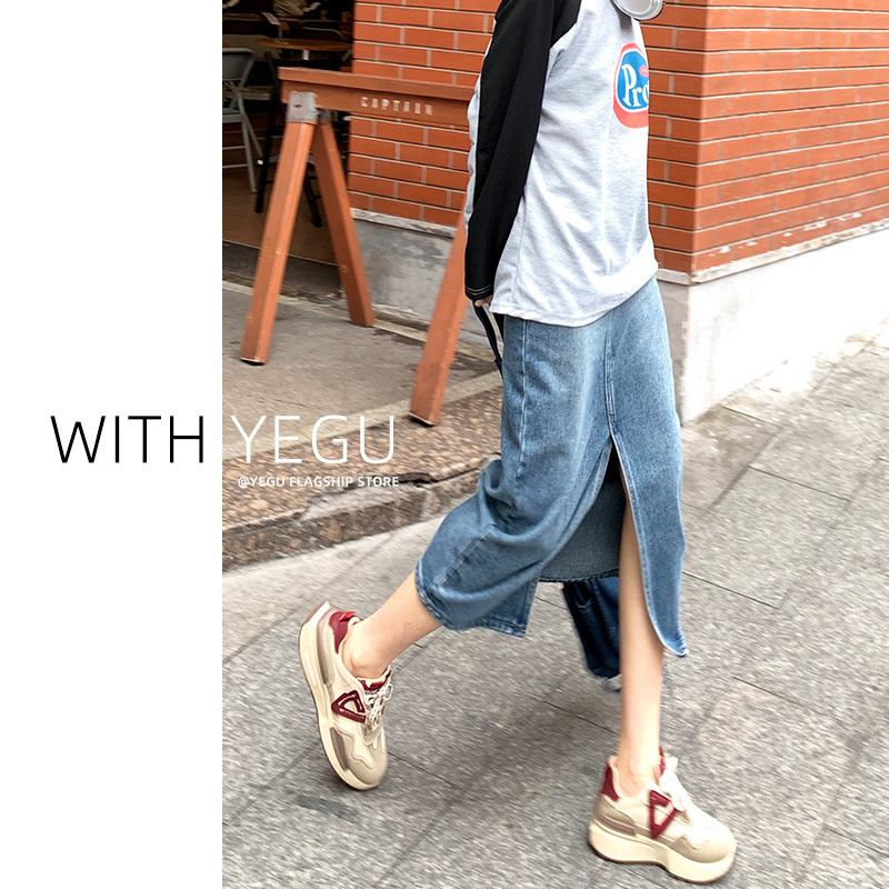 复古蓝牛仔裙女春夏新款中长款高腰a字裙小个子设计感开叉半身裙