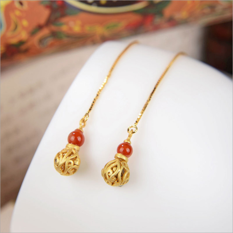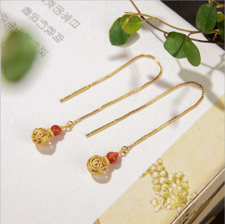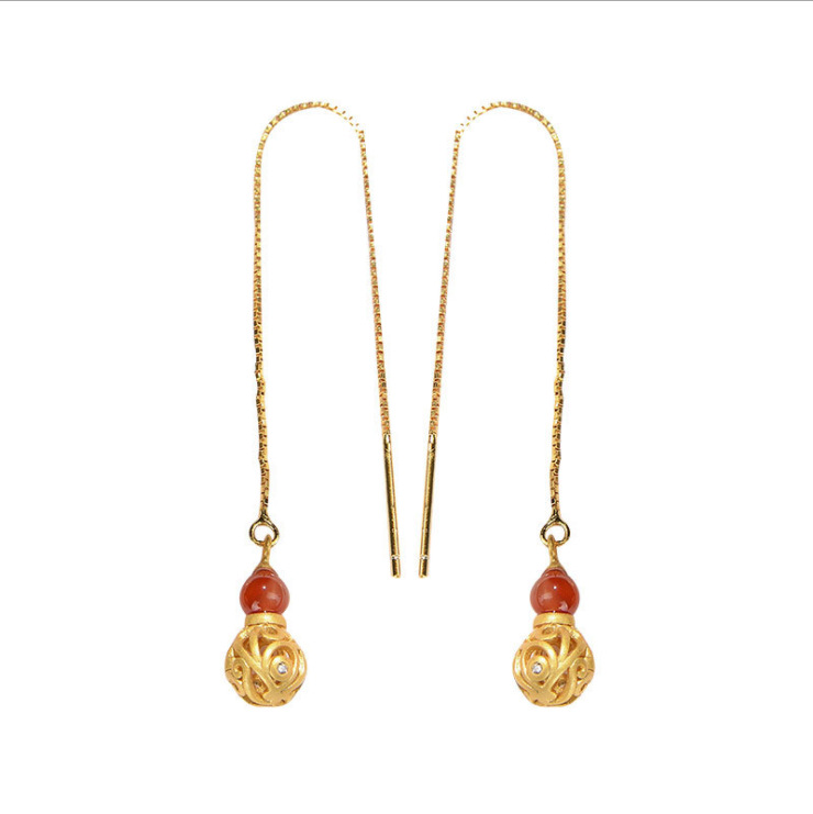 凝芸冰澜银饰。南红精美葫芦耳线 银镀金镂空花纹红玛瑙时尚耳饰