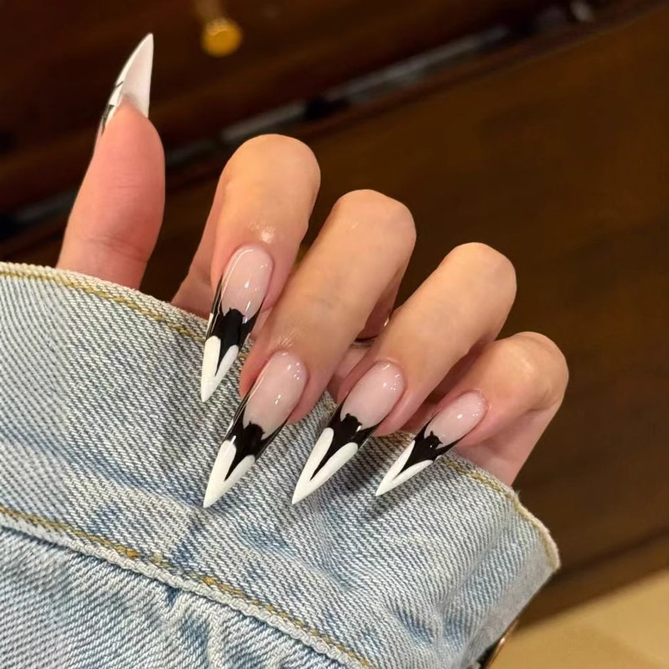 纯手工穿戴甲法式极简风万圣黑白甜酷搞怪手绘个性美甲贴片成品