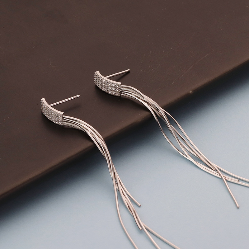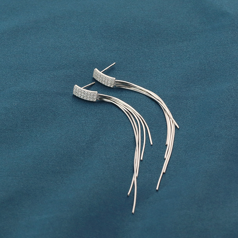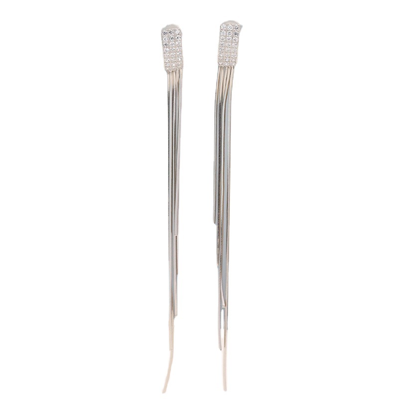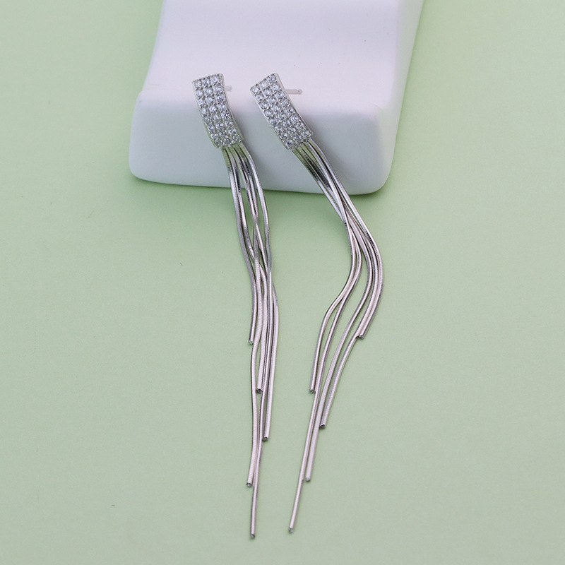 S925纯银满钻耳钉女 欧美风长款流苏耳环大气轻奢时尚嵌钻耳饰女