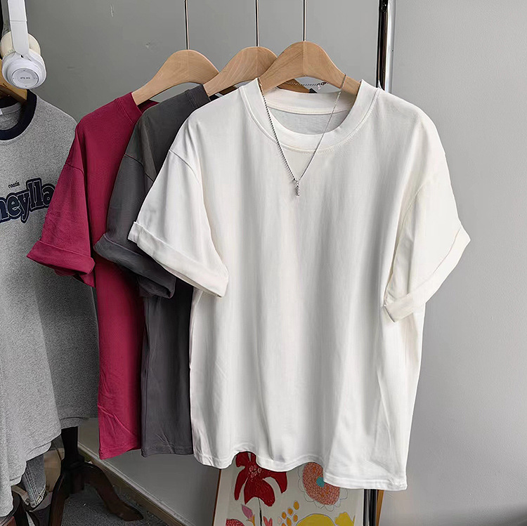 火龙果懒人T 显白韩版后背贴布宽松卷边短袖女百搭休闲纯棉上衣服