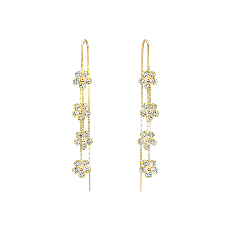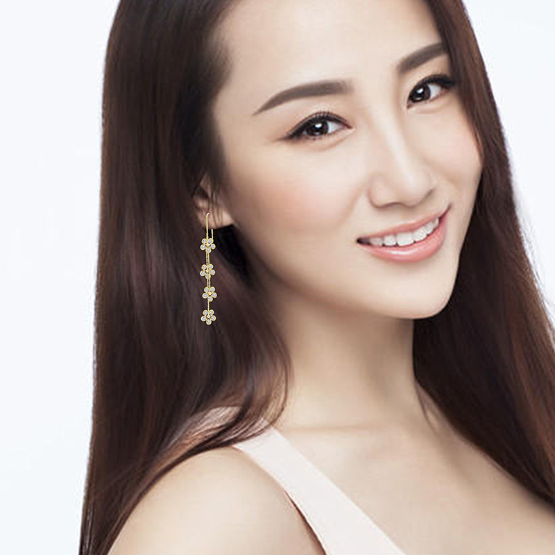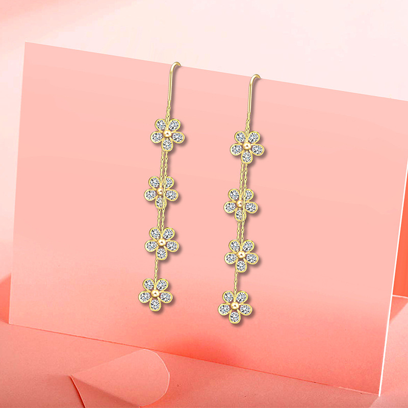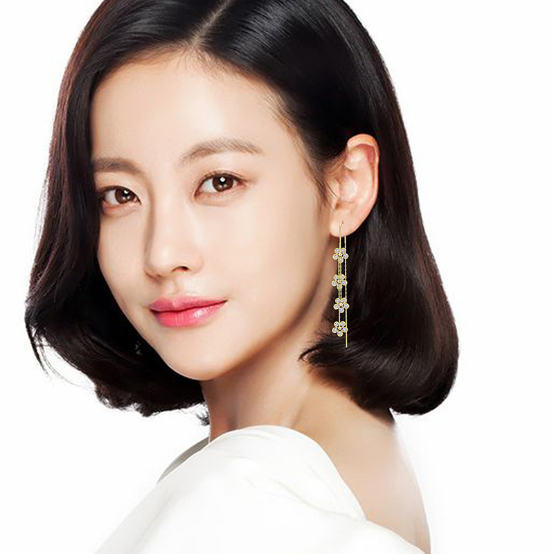 长款流苏梅花耳线铜镀真金锆石耳坠抖音同款轻奢耳饰新款潮耳环女