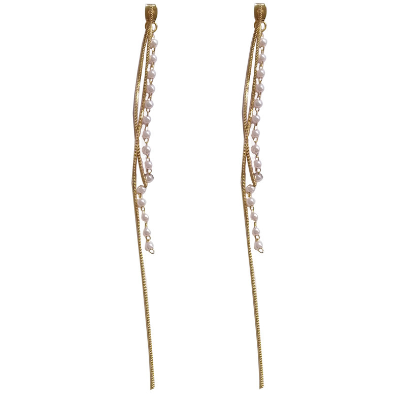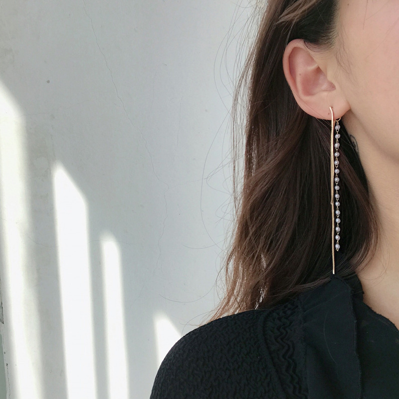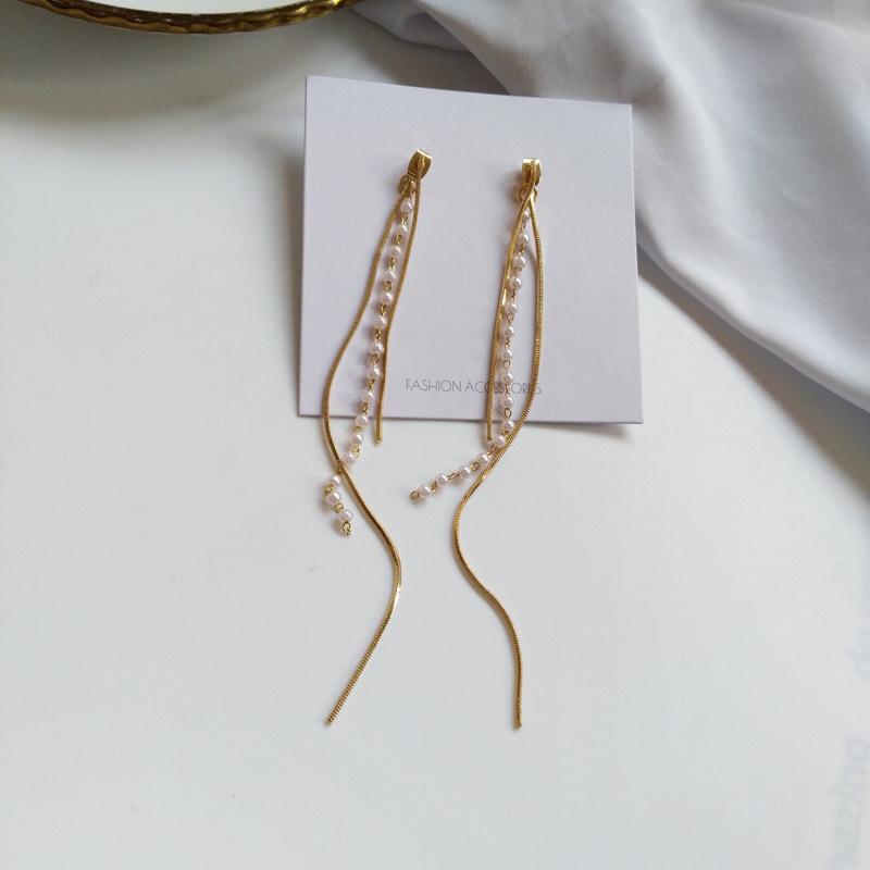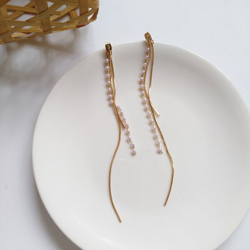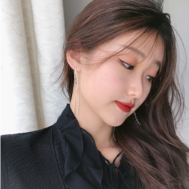 S925银针日韩长款流苏显瘦耳线高级感优雅简约风珍珠串女耳环女潮