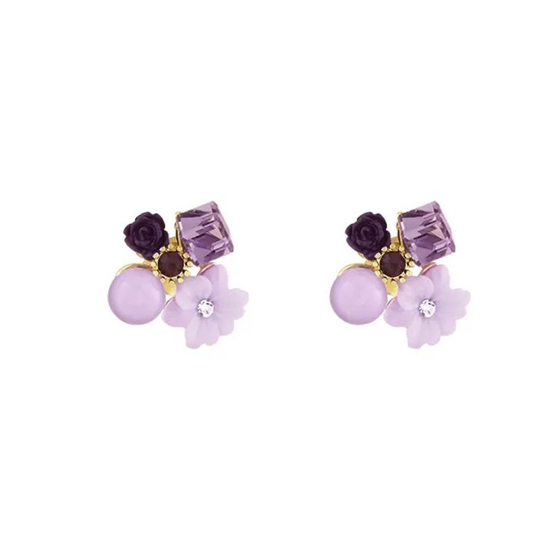 S925银针紫色水晶花朵耳钉新款潮网红时尚百搭气质耳环耳饰女