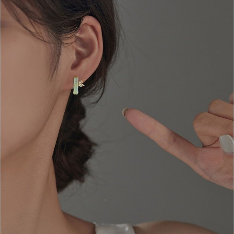 S925银针小巧雅竹耳钉中古风高级感耳环网红优雅气质耳饰品