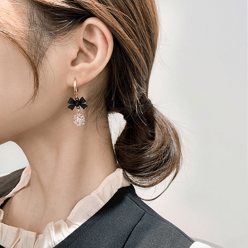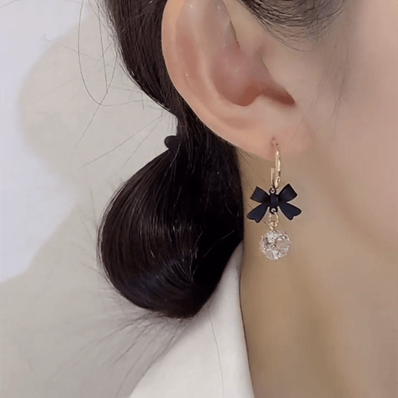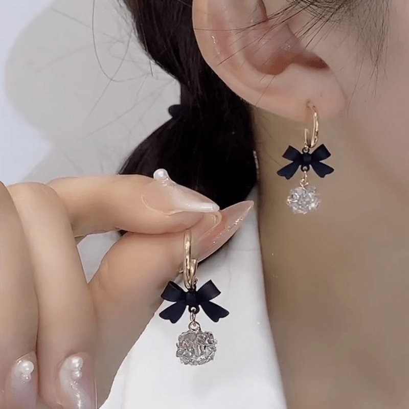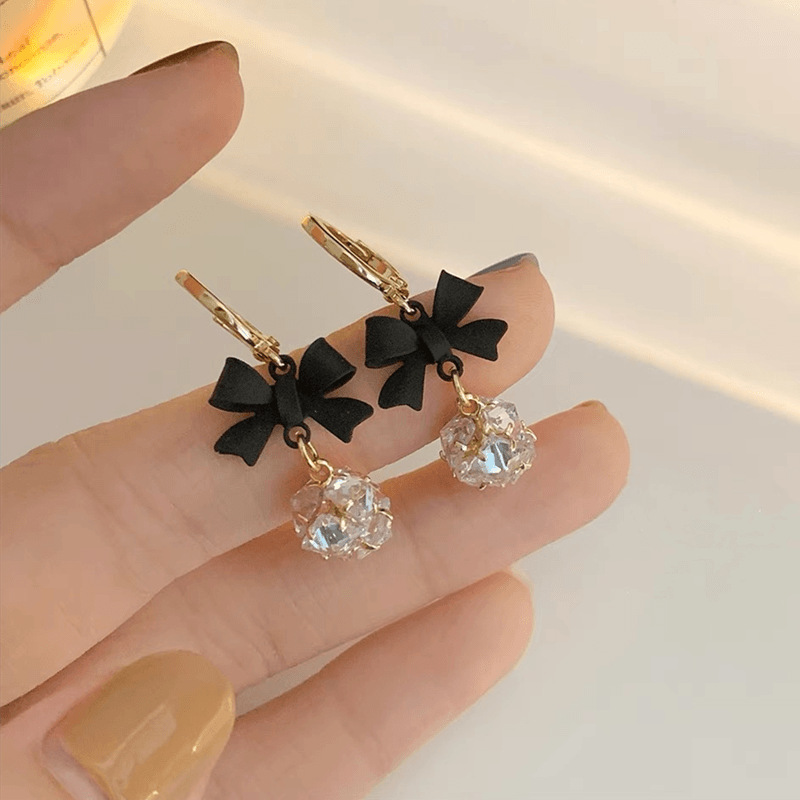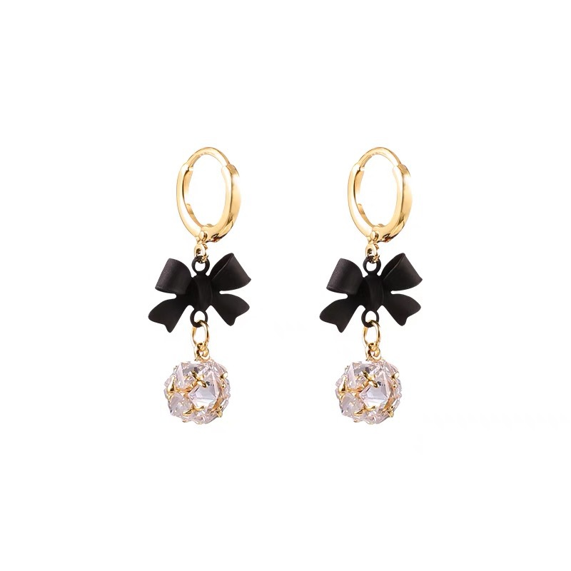 年新款潮爆款网红时尚精致百搭蝴蝶结钻球耳环耳扣耳坠耳钉
