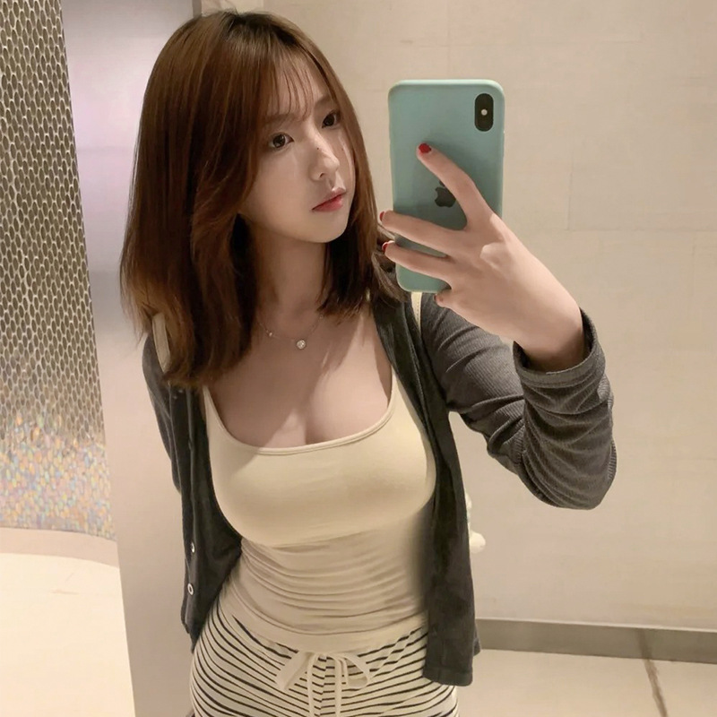 杏色吊带背心女夏季薄款带胸垫内搭修身显瘦性感辣妹外穿无袖上衣