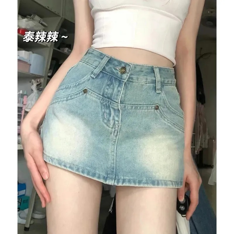春夏防走光裙裤辣妹浅色牛仔半身裙女装高腰显瘦半裙包臀短裙子潮